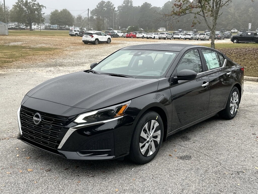 CVT with Xtronic, 4-Wheel Disc Brakes, 6 Speakers, ABS brakes, Air Conditioning, AM/FM radio: SiriusXM, Auto High-beam Headlights, Blind Spot Warning, Body-Colored Splash Guards, Brake assist, Bumpers: body-color, Cloth Seat Trim, Delay-off headlights, Driver door bin, Driver vanity mirror, Dual front impact airbags, Dual front side impact airbags, Electronic Stability Control, Floor Mats/Trunk Mat/Hideaway Net, Four wheel independent suspension, Front anti-roll bar, Front Bucket Seats, Front Center Armrest, Front reading lights, Fully automatic headlights, Illuminated entry, Knee airbag, Low tire pressure warning, NissanConnect featuring Apple CarPlay and Android Auto, Occupant sensing airbag, Outside temperature display, Overhead airbag, Overhead console, Panic alarm, Passenger door bin, Passenger vanity mirror, Power door mirrors, Power steering, Power windows, Radio data system, Radio: AM/FM Audio System, Rear anti-roll bar, Rear Parking Sensors, Rear reading lights, Rear seat center armrest, Rear side impact airbag, Rear window defroster, Remote keyless entry, Security system, Speed control, Speed-sensing steering, Speed-Sensitive Wipers, Split folding rear seat, Steering wheel mounted audio controls, Tachometer, Telescoping steering wheel, Tilt steering wheel, Traction control, Trip computer, Variably intermittent wipers, Wheels: 16" x 7" Steel w/Full Wheel Covers, CVT with Xtronic. New vehicle price includes all manufacturer and dealer incentives. Must finance with NMAC at standard rates to receive displayed price. Cash price may vary depending on NMAC and Dealer incentives. Not everyone qualifies for NMAC financing. Price in lieu of any special APR incentives cannot be combined with other offers unless specifically disclosed by the dealer. Prices do not include tax, tag, title or Georgia Lemon Law fees. Displayed prices include dealer doc fee and electronic filing fee. All pre-owned vehicles may also be subject to additional reconditioning and certification fees. Super Black Clearcoat 2025 Nissan Altima 2.5 S FWD 2.5L 4-Cylinder DOHC 16V CVT with Xtronic