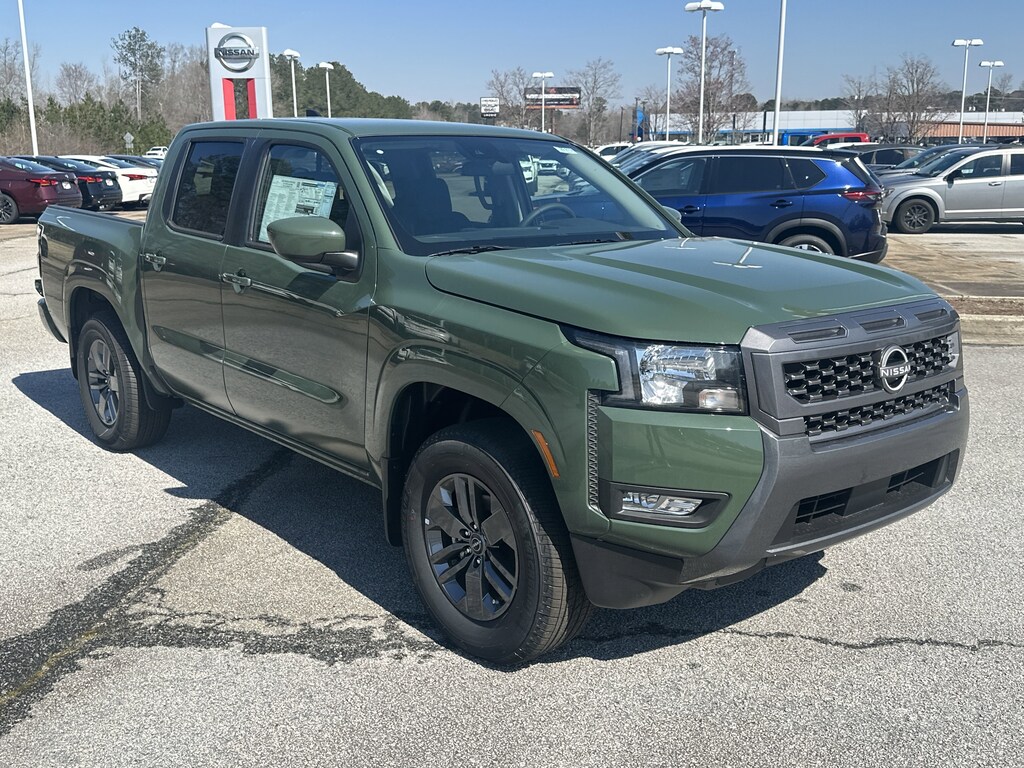 120V Power Outlet in Bed, 120V Power Outlet in Rear Center Console, 17" Alloy Wheels, 3.692 Axle Ratio, 4-Wheel Disc Brakes, 6 Speakers, ABS brakes, Air Conditioning, Alloy wheels, AM/FM radio: SiriusXM, Anti-whiplash front head restraints, Auto High-beam Headlights, Bed Under-Rail Lighting, Blind Spot Warning, Brake assist, Bumpers: body-color, Carpeted Floor Mats, Delay-off headlights, Driver door bin, Driver vanity mirror, Dual front impact airbags, Dual front side impact airbags, Electronic Stability Control, Electronic Tailgate Lock, Emergency communication system, Front anti-roll bar, Front Bucket Seats, Front Center Armrest, Front Halogen Fog Lights, Front reading lights, Front wheel independent suspension, Fully automatic headlights, Heated Front Seats, Heated Leather Steering Wheel, Heated Outside Mirrors, HVAC - Dual-Zone Front Auto A/C, I-Key w/Request Switches on O/S Handles, Illuminated entry, Illuminated Locking Glove Box w/Damper, Knee airbag, Leather Shift Lever, Low tire pressure warning, NissanConnect Services & Wi-Fi Hotspot Delete, Occupant sensing airbag, Overhead airbag, Overhead console, Panic alarm, Passenger door bin, Passenger vanity mirror, Power door mirrors, Power driver seat, Power steering, Power windows, Premium Cloth Seat Trim, Premium Paint, Radio data system, Radio: SXM/AM/FM/AUX/USB Audio System, Rear anti-roll bar, Rear seat center armrest, Rear side impact airbag, Rear step bumper, Remote Engine Starter, Remote keyless entry, Security system, Speed control, Speed-sensing steering, Split folding rear seat, Spray-In Bedliner, Steering wheel mounted audio controls, SV Convenience Package, Tachometer, Telematics Delete Package, Telescoping steering wheel, Tilt steering wheel, Tow/Haul Mode Switch, Traction control, Trailer Hitch w/Wiring Harness, Trip computer, Utili-Track System, Variably intermittent wipers, Voltmeter, Wireless Apple CarPlay/Wireless Android Auto. New vehicle price includes all manufacturer and dealer incentives. Must finance with NMAC at standard rates to receive displayed price. Cash price may vary depending on NMAC and Dealer incentives. Not everyone qualifies for NMAC financing. Price in lieu of any special APR incentives cannot be combined with other offers unless specifically disclosed by the dealer. Prices do not include tax, tag, title or Georgia Lemon Law fees. Displayed prices include dealer doc fee and electronic filing fee. All pre-owned vehicles may also be subject to additional reconditioning and certification fees. Tactical Green Metallic 2025 Nissan Frontier SV RWD 3.8L DI DOHC 24V V6 9-Speed Automatic with Overdrive