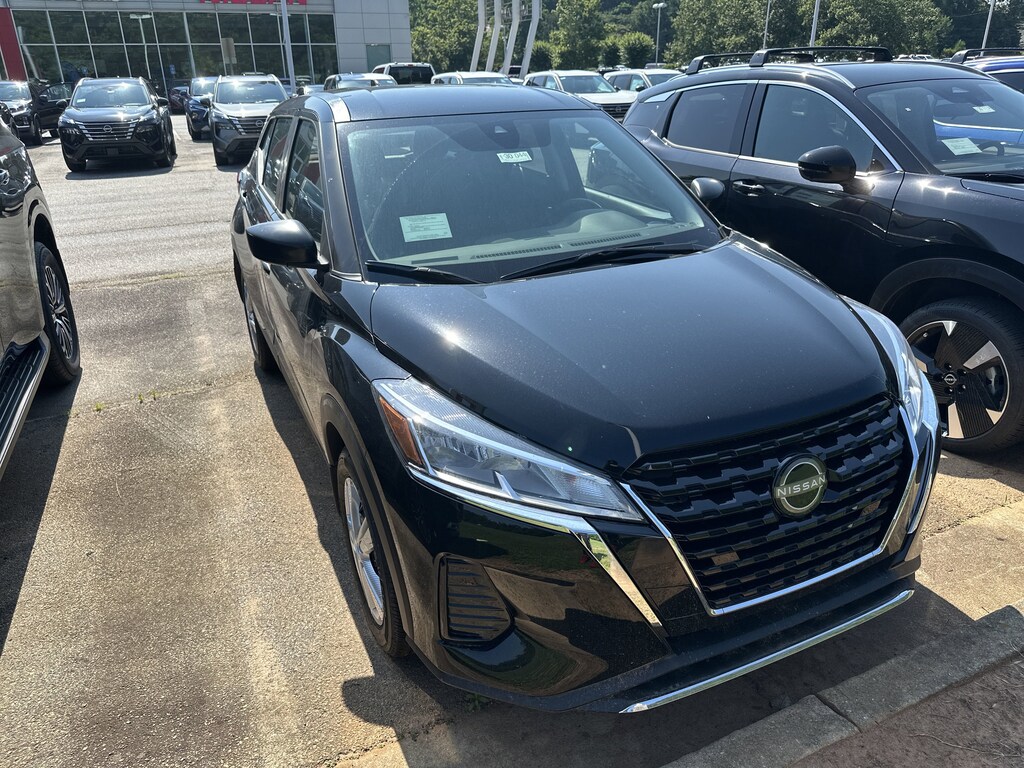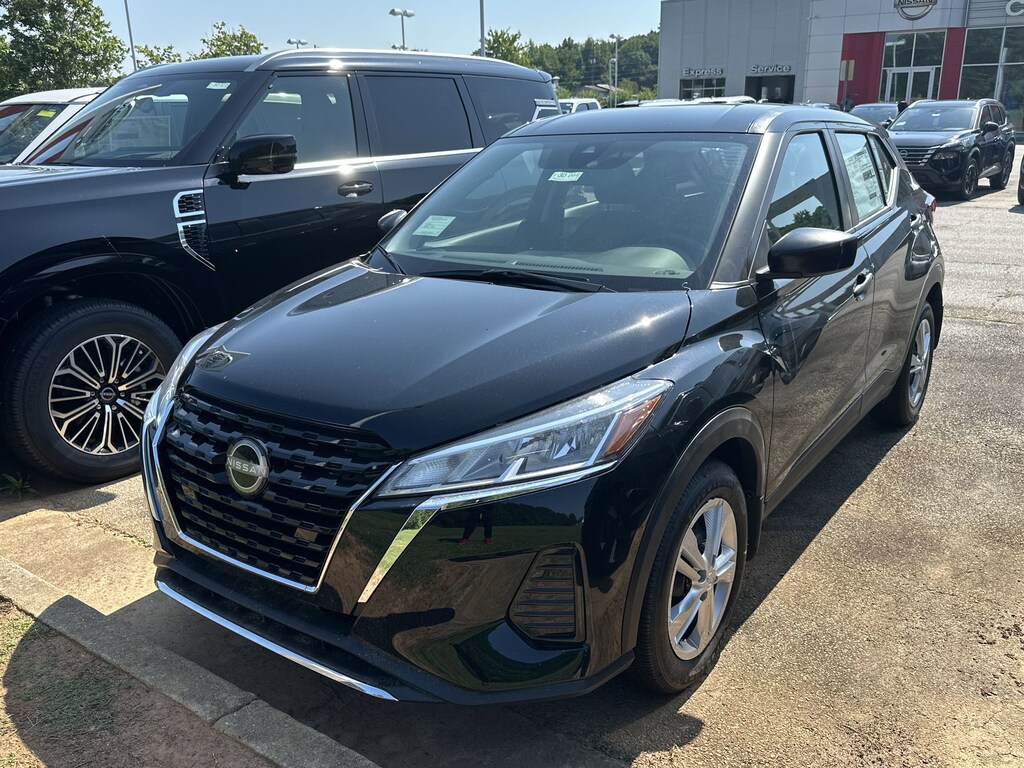 16" Steel Wheels w/Full Covers, 6 Speakers, ABS brakes, Air Conditioning, AM/FM radio, Apple CarPlay/Android Auto, Auto High-beam Headlights, Blind Spot Warning, Brake assist, Bumpers: body-color, Cloth Seat Trim w/Single Stitch, Driver door bin, Driver vanity mirror, Driver's Seat Mounted Armrest, Dual front impact airbags, Dual front side impact airbags, Electronic Stability Control, Front anti-roll bar, Front Bucket Seats, Front reading lights, Front wheel independent suspension, Fully automatic headlights, Illuminated entry, Knee airbag, Low tire pressure warning, Occupant sensing airbag, Outside temperature display, Overhead airbag, Panic alarm, Passenger door bin, Passenger vanity mirror, Power door mirrors, Power steering, Power windows, Radio data system, Radio: AM/FM Audio System, Rear Parking Sensors, Rear reading lights, Rear side impact airbag, Rear window defroster, Rear window wiper, Remote keyless entry, Speed control, Split folding rear seat, Sport steering wheel, Steering wheel mounted audio controls, Tachometer, Telescoping steering wheel, Tilt steering wheel, Traction control, Trip computer, Variably intermittent wipers. New vehicle price includes all manufacturer and dealer incentives. Must finance with NMAC at standard rates to receive displayed price. Cash price may vary depending on NMAC and Dealer incentives. Not everyone qualifies for NMAC financing. Price in lieu of any special APR incentives cannot be combined with other offers unless specifically disclosed by the dealer. Prices do not include tax, tag, title or Georgia Lemon Law fees. Displayed prices include dealer doc fee and electronic filing fee. All pre-owned vehicles may also be subject to additional reconditioning and certification fees. Super Black 2025 Nissan Kicks S FWD 1.6L 4-Cylinder DOHC 16V CVT with Xtronic