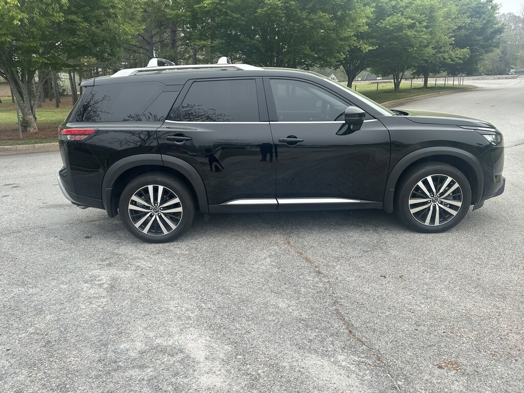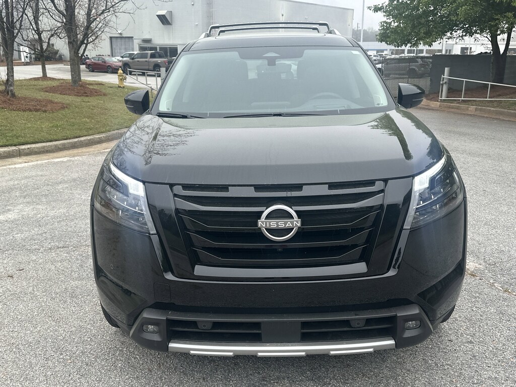 13 Speakers, 3rd row seats: bench, 4-Wheel Disc Brakes, ABS brakes, Air Conditioning, Alloy wheels, AM/FM radio: SiriusXM, Auto High-beam Headlights, Auto tilt-away steering wheel, Auto-dimming Rear-View mirror, Automatic temperature control, Bench Seat Carpeted Floor Mats (Set of 4), Black Appearance Package, Black Grille, Black Liftgate Emblems, Black Splash Guards (Set of 4), Bodyside moldings, Bose Premium Audio System, Brake assist, Bumpers: body-color, Cargo Area Protector, Cargo Net, Cargo Package, Climate Controlled Front Bucket Seats, Cross Bars, Delay-off headlights, Driver door bin, Driver vanity mirror, Dual front impact airbags, Dual front side impact airbags, Electronic Stability Control, Emergency communication system, Exterior Parking Camera Rear, First Aid, Four wheel independent suspension, Front anti-roll bar, Front Bucket Seats, Front Center Armrest, Front dual zone A/C, Front reading lights, Fully automatic headlights, Garage door transmitter: HomeLink, Heads-Up Display, Heated door mirrors, Heated front seats, Heated rear seats, Heated steering wheel, Illuminated entry, Knee airbag, Leather steering wheel, LED Fog Lamps, Low tire pressure warning, Memory seat, Navigation system: NissanConnect with Navigation and Services, NissanConnect featuring Apple CarPlay and Android Auto, NissanConnect w/Navigation & Services, Occupant sensing airbag, Outside temperature display, Overhead airbag, Overhead console, Panic alarm, Passenger door bin, Passenger vanity mirror, Power door mirrors, Power driver seat, Power Liftgate, Power moonroof, Power passenger seat, Power steering, Power windows, Radio data system, Radio: AM/FM Audio System, Rain sensing wipers, Rear air conditioning, Rear anti-roll bar, Rear reading lights, Rear seat center armrest, Rear side impact airbag, Rear window defroster, Rear window wiper, Reclining 3rd row seat, Remote keyless entry, Security system, Semi-Aniline Leather-Appointed Seating Surfaces, Speed control, Speed-sensing steering, Speed-Sensitive Wipers, Split folding rear seat, Spoiler, Steering wheel memory, Steering wheel mounted audio controls, Tachometer, Telescoping steering wheel, Tilt steering wheel, Traction control, Trip computer, Turn signal indicator mirrors, Variably intermittent wipers, Ventilated front seats, Wheels: 20" x 8J Machined Alloy. New vehicle price includes all manufacturer and dealer incentives. Must finance with NMAC at standard rates to receive displayed price. Cash price may vary depending on NMAC and Dealer incentives. Not everyone qualifies for NMAC financing. Price in lieu of any special APR incentives cannot be combined with other offers unless specifically disclosed by the dealer. Prices do not include tax, tag, title or Georgia Lemon Law fees. Displayed prices include dealer doc fee and electronic filing fee. All pre-owned vehicles may also be subject to additional reconditioning and certification fees. Super Black 2025 Nissan Pathfinder Platinum FWD 3.5L V6 DOHC 9-Speed Automatic