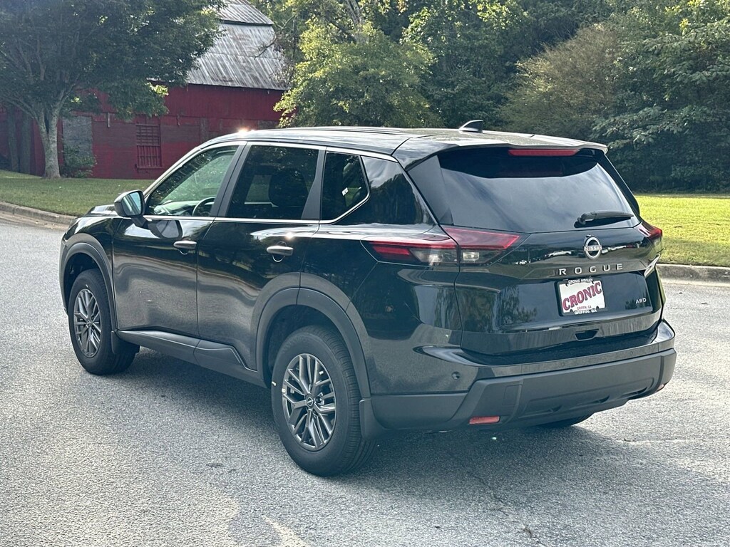 AWD, 17" Aluminum Alloy Wheels, 4 Speakers, 4-Wheel Disc Brakes, ABS brakes, Air Conditioning, Alloy wheels, AM/FM radio: SiriusXM, Apple CarPlay/Android Auto, Auto High-beam Headlights, Black Splash Guards (Set of 4), Blind Spot Warning, Brake assist, Bumpers: body-color, Cloth Seat Trim, Delay-off headlights, Driver door bin, Driver vanity mirror, Dual front impact airbags, Dual front side impact airbags, Electronic Stability Control, First Aid Kit, Floor Mats w/1-Piece Cargo Area Protector, Four wheel independent suspension, Front anti-roll bar, Front Bucket Seats, Front Center Armrest, Front reading lights, Fully automatic headlights, Illuminated entry, Knee airbag, Low tire pressure warning, Occupant sensing airbag, Outside temperature display, Overhead airbag, Overhead console, Panic alarm, Passenger door bin, Passenger vanity mirror, Power door mirrors, Power steering, Power windows, Radio data system, Radio: AM/FM NissanConnect, Rear anti-roll bar, Rear seat center armrest, Rear side impact airbag, Rear window defroster, Rear window wiper, Remote keyless entry, Speed control, Speed-sensing steering, Speed-Sensitive Wipers, Split folding rear seat, Spoiler, Steering wheel mounted audio controls, Tachometer, Telescoping steering wheel, Tilt steering wheel, Traction control, Trip computer, Variably intermittent wipers, AWD. New vehicle price includes all manufacturer and dealer incentives. Must finance with NMAC at standard rates to receive displayed price. Cash price may vary depending on NMAC and Dealer incentives. Not everyone qualifies for NMAC financing. Price in lieu of any special APR incentives cannot be combined with other offers unless specifically disclosed by the dealer. Prices do not include tax, tag, title or Georgia Lemon Law fees. Displayed prices include dealer doc fee and electronic filing fee. All pre-owned vehicles may also be subject to additional reconditioning and certification fees. Super Black 2025 Nissan Rogue S AWD 1.5L DOHC CVT with Xtronic