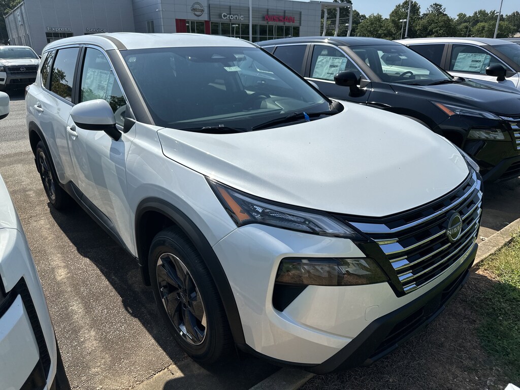 4-Wheel Disc Brakes, 6 Speakers, ABS brakes, Air Conditioning, Alloy wheels, AM/FM radio: SiriusXM, Apple CarPlay/Android Auto, Auto High-beam Headlights, Automatic temperature control, Brake assist, Bumpers: body-color, Cloth Seat Trim w/Patterned Inserts, Delay-off headlights, Driver door bin, Driver vanity mirror, Dual front impact airbags, Dual front side impact airbags, Electronic Stability Control, Emergency communication system: NissanConnect Services, Four wheel independent suspension, Front anti-roll bar, Front Bucket Seats, Front Center Armrest, Front dual zone A/C, Front reading lights, Fully automatic headlights, Heated door mirrors, Illuminated entry, Knee airbag, Low tire pressure warning, Occupant sensing airbag, Outside temperature display, Overhead airbag, Overhead console, Panic alarm, Passenger door bin, Passenger vanity mirror, Power door mirrors, Power driver seat, Power Liftgate, Power steering, Power windows, Premium Paint, Radio data system, Radio: AM/FM NissanConnect, Rear anti-roll bar, Rear seat center armrest, Rear side impact airbag, Rear window defroster, Rear window wiper, Remote keyless entry, Speed control, Speed-sensing steering, Speed-Sensitive Wipers, Split folding rear seat, Spoiler, Steering wheel mounted audio controls, Tachometer, Telescoping steering wheel, Tilt steering wheel, Traction control, Trip computer, Variably intermittent wipers, Wheels: 18" Dark Painted Machine Finished Alloy. New vehicle price includes all manufacturer and dealer incentives. Must finance with NMAC at standard rates to receive displayed price. Cash price may vary depending on NMAC and Dealer incentives. Not everyone qualifies for NMAC financing. Price in lieu of any special APR incentives cannot be combined with other offers unless specifically disclosed by the dealer. Prices do not include tax, tag, title or Georgia Lemon Law fees. Displayed prices include dealer doc fee and electronic filing fee. All pre-owned vehicles may also be subject to additional reconditioning and certification fees. White Pearl 2025 Nissan Rogue SV FWD 1.5L DOHC CVT with Xtronic