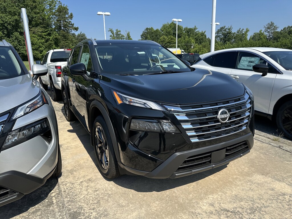 4-Wheel Disc Brakes, 6 Speakers, ABS brakes, Air Conditioning, Alloy wheels, AM/FM radio: SiriusXM, Apple CarPlay/Android Auto, Auto High-beam Headlights, Automatic temperature control, Brake assist, Bumpers: body-color, Cloth Seat Trim w/Patterned Inserts, Delay-off headlights, Driver door bin, Driver vanity mirror, Dual front impact airbags, Dual front side impact airbags, Electronic Stability Control, Emergency communication system: NissanConnect Services, Four wheel independent suspension, Front anti-roll bar, Front Bucket Seats, Front Center Armrest, Front dual zone A/C, Front reading lights, Fully automatic headlights, Heated door mirrors, Illuminated entry, Knee airbag, Low tire pressure warning, Occupant sensing airbag, Outside temperature display, Overhead airbag, Overhead console, Panic alarm, Passenger door bin, Passenger vanity mirror, Power door mirrors, Power driver seat, Power Liftgate, Power steering, Power windows, Radio data system, Radio: AM/FM NissanConnect, Rear anti-roll bar, Rear seat center armrest, Rear side impact airbag, Rear window defroster, Rear window wiper, Remote keyless entry, Speed control, Speed-sensing steering, Speed-Sensitive Wipers, Split folding rear seat, Spoiler, Steering wheel mounted audio controls, Tachometer, Telescoping steering wheel, Tilt steering wheel, Traction control, Trip computer, Variably intermittent wipers, Wheels: 18" Dark Painted Machine Finished Alloy. New vehicle price includes all manufacturer and dealer incentives. Must finance with NMAC at standard rates to receive displayed price. Cash price may vary depending on NMAC and Dealer incentives. Not everyone qualifies for NMAC financing. Price in lieu of any special APR incentives cannot be combined with other offers unless specifically disclosed by the dealer. Prices do not include tax, tag, title or Georgia Lemon Law fees. Displayed prices include dealer doc fee and electronic filing fee. All pre-owned vehicles may also be subject to additional reconditioning and certification fees. Super Black 2025 Nissan Rogue SV FWD 1.5L DOHC CVT with Xtronic