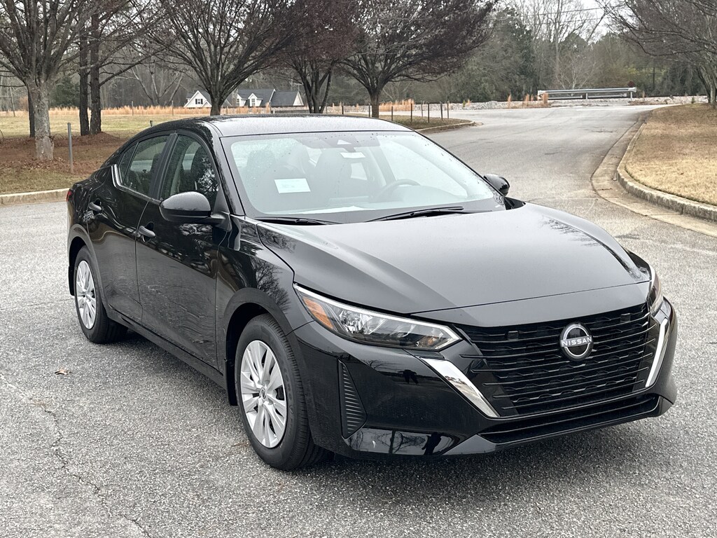 CVT with Xtronic, Charcoal Cloth, 4 Speakers, ABS brakes, Air Conditioning, AM/FM radio, Auto High-beam Headlights, Blind Spot Warning, Body Colored Splash Guards (4-Piece), Brake assist, Bumpers: body-color, Cloth Seat Trim, Delay-off headlights, Driver door bin, Driver vanity mirror, Dual front impact airbags, Dual front side impact airbags, Electronic Stability Control, Four wheel independent suspension, Front anti-roll bar, Front Bucket Seats, Front Center Armrest, Front reading lights, Fully automatic headlights, Illuminated entry, Knee airbag, Low tire pressure warning, NissanConnect featuring Apple CarPlay and Android Auto, Occupant sensing airbag, Outside temperature display, Overhead airbag, Overhead console, Panic alarm, Passenger door bin, Passenger vanity mirror, Power door mirrors, Power steering, Power windows, Radio data system, Rear anti-roll bar, Rear Parking Sensors, Rear side impact airbag, Rear window defroster, Remote keyless entry, Speed control, Speed-sensing steering, Split folding rear seat, Steering wheel mounted audio controls, Tachometer, Telescoping steering wheel, Tilt steering wheel, Traction control, Trip computer, Variably intermittent wipers, CVT with Xtronic, Charcoal Cloth. New vehicle price includes all manufacturer and dealer incentives. Must finance with NMAC at standard rates to receive displayed price. Cash price may vary depending on NMAC and Dealer incentives. Not everyone qualifies for NMAC financing. Price in lieu of any special APR incentives cannot be combined with other offers unless specifically disclosed by the dealer. Prices do not include tax, tag, title or Georgia Lemon Law fees. Displayed prices include dealer doc fee and electronic filing fee. All pre-owned vehicles may also be subject to additional reconditioning and certification fees. Super Black 2025 Nissan Sentra S FWD 2.0L I4 DOHC CVT with Xtronic