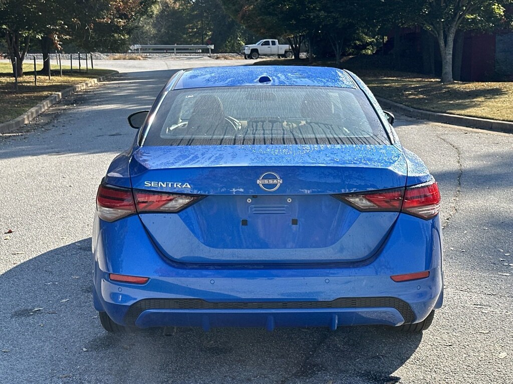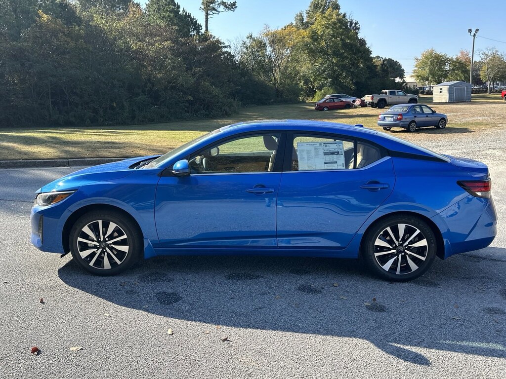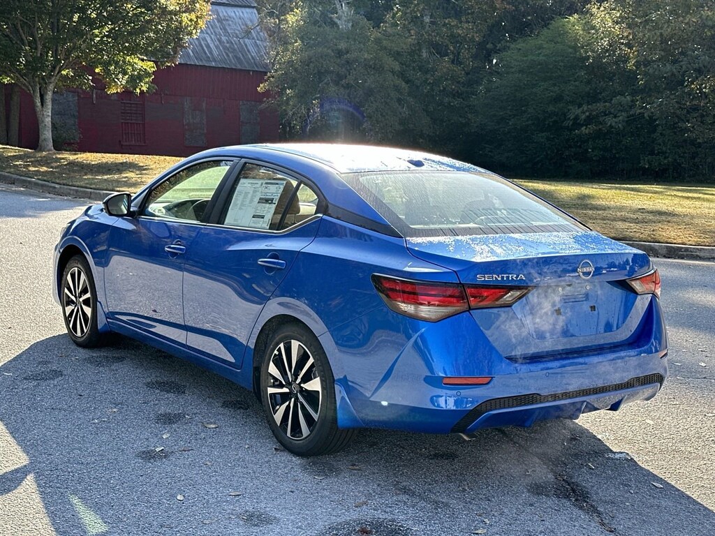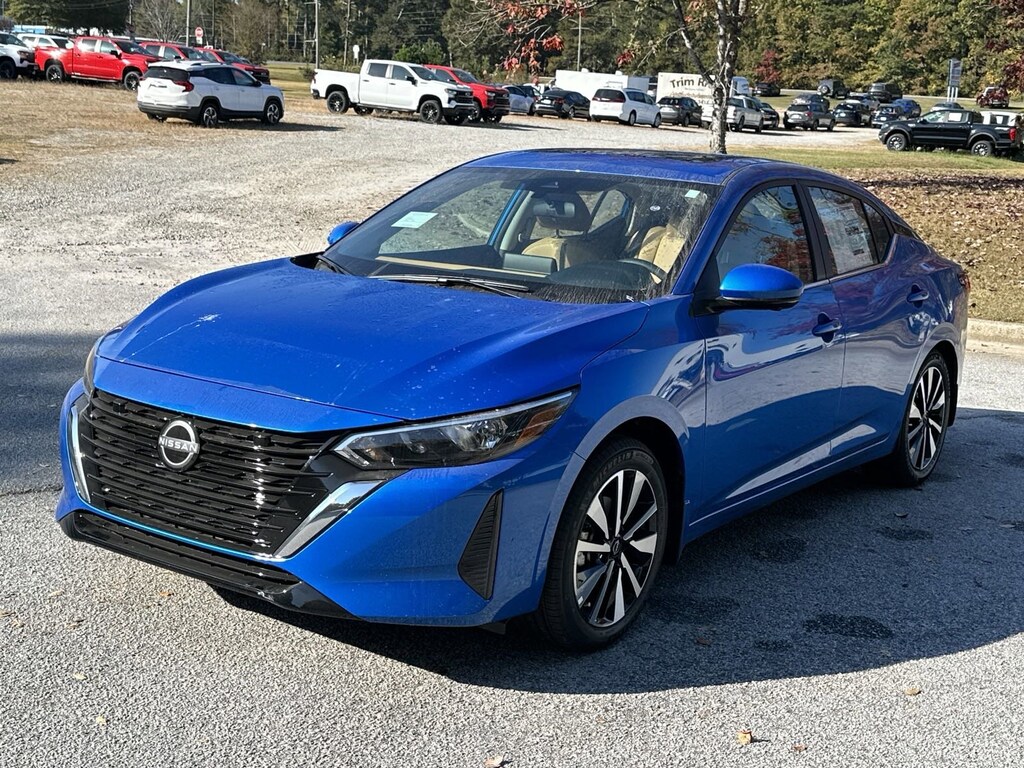 CVT with Xtronic, Sv Premium Leather, 16" Alloy Wheels, 17" Alloy Wheels, 4-Wheel Disc Brakes, 6-Way Power Driver's Seat, 8 Speakers, ABS brakes, Air Conditioning, All-Weather Package, Alloy wheels, AM/FM radio: SiriusXM, Auto High-beam Headlights, Blind Spot Warning, Body Colored Splash Guards (4-Piece), Bose Premium Audio System w/8 Speakers, Brake assist, Bumpers: body-color, Carpeted Floor Mats w/Trunk Mat, Clear Rear Bumper Protector, Delay-off headlights, Door Sill Plates, Driver door bin, Driver vanity mirror, Dual front impact airbags, Dual front side impact airbags, Dual Zone Auto Climate Control, Electronic Stability Control, Four wheel independent suspension, Front anti-roll bar, Front Bucket Seats, Front Center Armrest, Front reading lights, Fully automatic headlights, Heated Exterior Mirrors, Heated Front Seats, Illuminated entry, Intelligent Around View Monitor (I-AVM), Knee airbag, Leather Shift Knob, Leather-Wrapped Heated Steering Wheel, Low tire pressure warning, NissanConnect featuring Apple CarPlay and Android Auto, Occupant sensing airbag, Outside temperature display, Overhead airbag, Overhead console, Panic alarm, Passenger door bin, Passenger vanity mirror, Power door mirrors, Power Sliding Glass Moonroof w/Tilt Feature, Power steering, Power windows, Quilted Leather Seat Trim, Radio data system, Radio: AM/FM w/RDS/MP3/Aux-In, Rear anti-roll bar, Rear Armrest w/2 Cupholders, Rear Parking Sensors, Rear side impact airbag, Rear window defroster, Remote Engine Start, Remote keyless entry, Security system, Speed control, Speed-sensing steering, Split folding rear seat, Steering wheel mounted audio controls, SV Premium Package, Tachometer, Telescoping steering wheel, Tilt steering wheel, Traction control, Trip computer, Turn Signal Indicators On Exterior Mirrors, Upgraded Cloth Seat Trim, Variably intermittent wipers, CVT with Xtronic, Sv Premium Leather. New vehicle price includes all manufacturer and dealer incentives. Must finance with NMAC at standard rates to receive displayed price. Cash price may vary depending on NMAC and Dealer incentives. Not everyone qualifies for NMAC financing. Price in lieu of any special APR incentives cannot be combined with other offers unless specifically disclosed by the dealer. Prices do not include tax, tag, title or Georgia Lemon Law fees. Displayed prices include dealer doc fee and electronic filing fee. All pre-owned vehicles may also be subject to additional reconditioning and certification fees. Electric Blue Metallic 2025 Nissan Sentra SV FWD 2.0L I4 DOHC CVT with Xtronic