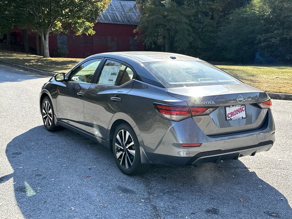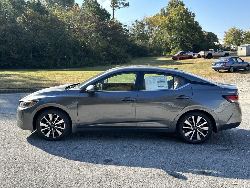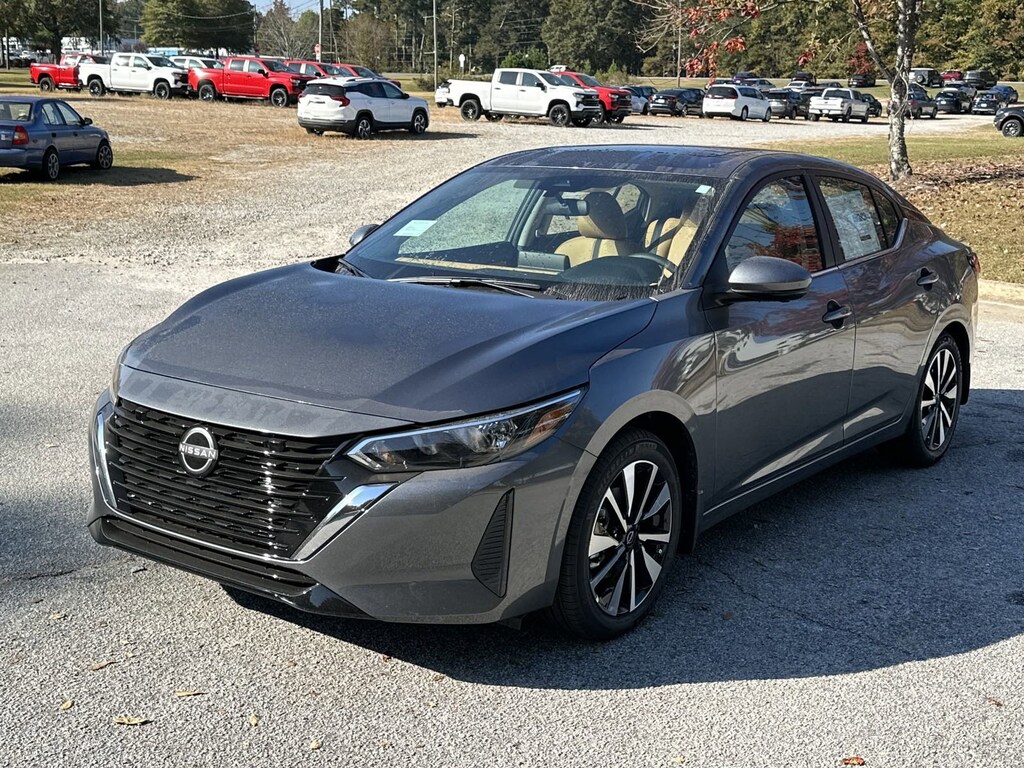 CVT with Xtronic, Sv Premium Leather, 16" Alloy Wheels, 4-Wheel Disc Brakes, 8 Speakers, ABS brakes, Air Conditioning, Alloy wheels, AM/FM radio: SiriusXM, Auto High-beam Headlights, Blind Spot Warning, Brake assist, Bumpers: body-color, Delay-off headlights, Driver door bin, Driver vanity mirror, Dual front impact airbags, Dual front side impact airbags, Electronic Stability Control, Four wheel independent suspension, Front anti-roll bar, Front Bucket Seats, Front Center Armrest, Front reading lights, Fully automatic headlights, Illuminated entry, Knee airbag, Low tire pressure warning, NissanConnect featuring Apple CarPlay and Android Auto, Occupant sensing airbag, Outside temperature display, Overhead airbag, Overhead console, Panic alarm, Passenger door bin, Passenger vanity mirror, Power door mirrors, Power steering, Power windows, Radio data system, Radio: AM/FM w/RDS/MP3/Aux-In, Rear anti-roll bar, Rear Parking Sensors, Rear side impact airbag, Rear window defroster, Remote keyless entry, Security system, Speed control, Speed-sensing steering, Split folding rear seat, Steering wheel mounted audio controls, Tachometer, Telescoping steering wheel, Tilt steering wheel, Traction control, Trip computer, Upgraded Cloth Seat Trim, Variably intermittent wipers, CVT with Xtronic, Sv Premium Leather. New vehicle price includes all manufacturer and dealer incentives. Must finance with NMAC at standard rates to receive displayed price. Cash price may vary depending on NMAC and Dealer incentives. Not everyone qualifies for NMAC financing. Price in lieu of any special APR incentives cannot be combined with other offers unless specifically disclosed by the dealer. Prices do not include tax, tag, title or Georgia Lemon Law fees. Displayed prices include dealer doc fee and electronic filing fee. All pre-owned vehicles may also be subject to additional reconditioning and certification fees. Gun Metallic 2025 Nissan Sentra SV FWD 2.0L I4 DOHC CVT with Xtronic