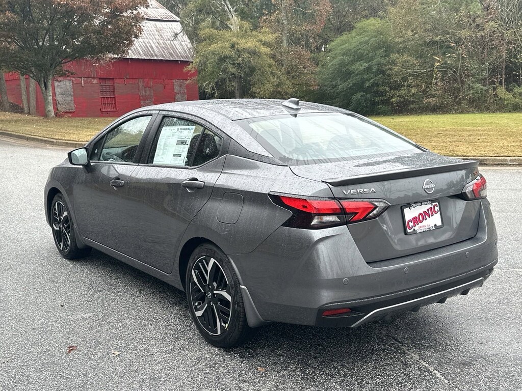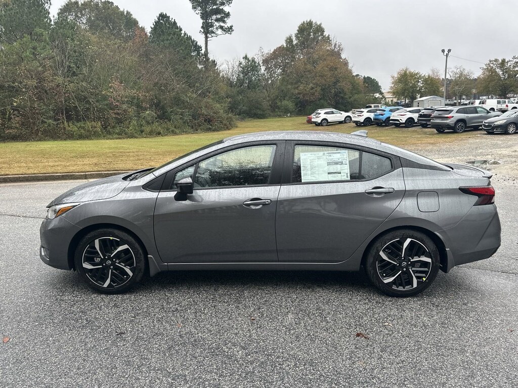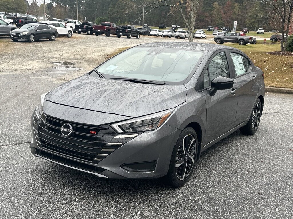 17" Aluminum Alloy Wheels, 6 Speakers, ABS brakes, Air Conditioning, Alloy wheels, AM/FM radio: SiriusXM, Apple CarPlay/Android Auto, Auto High-beam Headlights, Automatic temperature control, Blind Spot Warning, Brake assist, Bumpers: body-color, Carpeted Floor Mats & Trunk Mat (5-Piece Set), Delay-off headlights, Driver door bin, Driver vanity mirror, Dual front impact airbags, Dual front side impact airbags, Electronic Stability Control, Emergency communication system, Front anti-roll bar, Front Bucket Seats, Front Center Armrest, Front reading lights, Front wheel independent suspension, Fully automatic headlights, Heated door mirrors, Heated Front Bucket Seats, Heated front seats, Illuminated entry, Knee airbag, Leather steering wheel, Low tire pressure warning, Occupant sensing airbag, Outside temperature display, Overhead airbag, Panic alarm, Passenger door bin, Passenger vanity mirror, Power door mirrors, Power steering, Power windows, Radio data system, Radio: AM/FM Audio System, Rear Parking Sensors, Rear side impact airbag, Rear window defroster, Remote keyless entry, Shopping Bag Hooks, Speed control, Splash Guards, Split folding rear seat, Spoiler, SR Fabric Seat Trim, Steering wheel mounted audio controls, Tachometer, Telescoping steering wheel, Tilt steering wheel, Traction control, Trip computer, Trunk Net, Trunk Package, Turn signal indicator mirrors, Variably intermittent wipers. New vehicle price includes all manufacturer and dealer incentives. Must finance with NMAC at standard rates to receive displayed price. Cash price may vary depending on NMAC and Dealer incentives. Not everyone qualifies for NMAC financing. Price in lieu of any special APR incentives cannot be combined with other offers unless specifically disclosed by the dealer. Prices do not include tax, tag, title or Georgia Lemon Law fees. Displayed prices include dealer doc fee and electronic filing fee. All pre-owned vehicles may also be subject to additional reconditioning and certification fees. Gun Metallic 2025 Nissan Versa 1.6 SR FWD 1.6L I4 DOHC 16V CVT