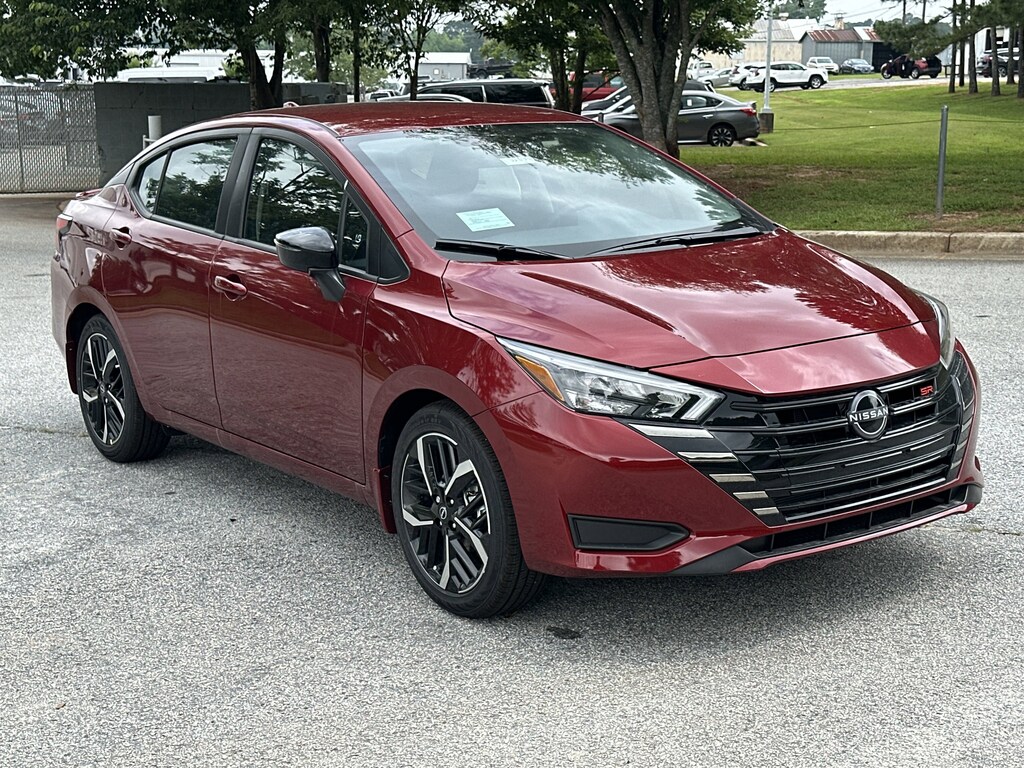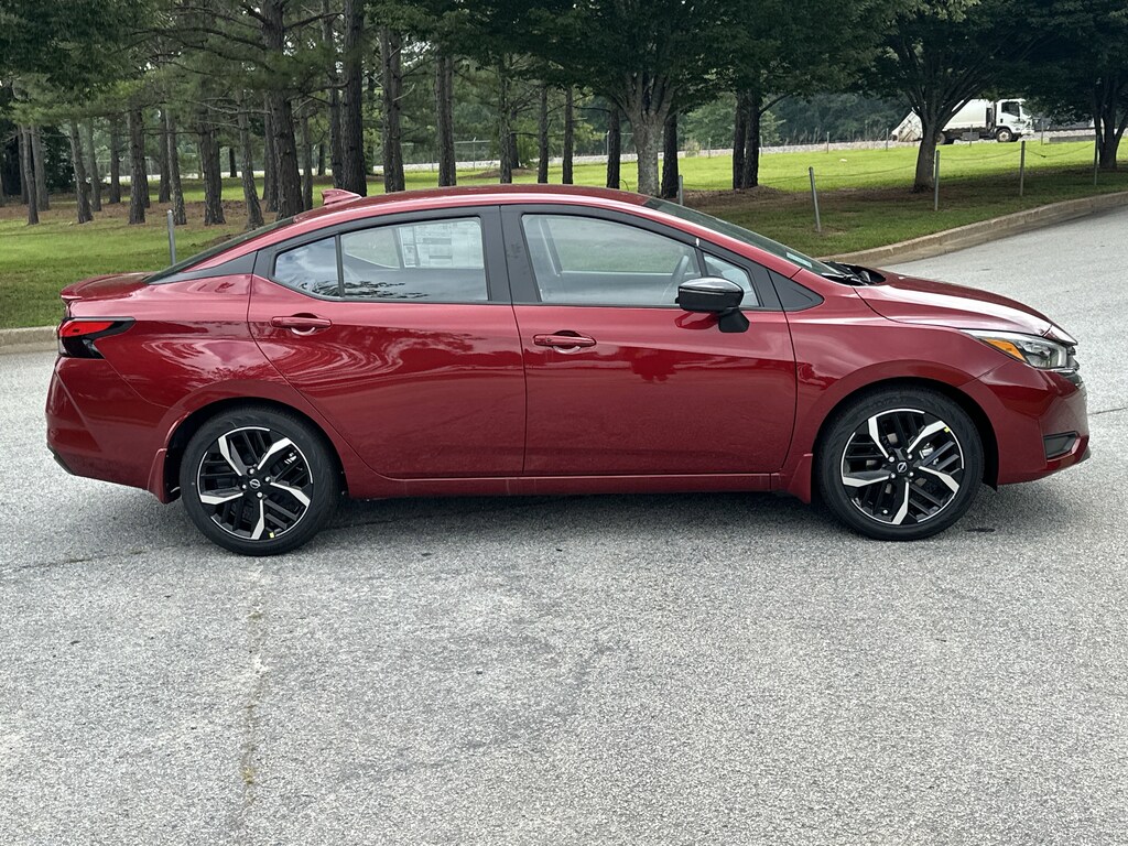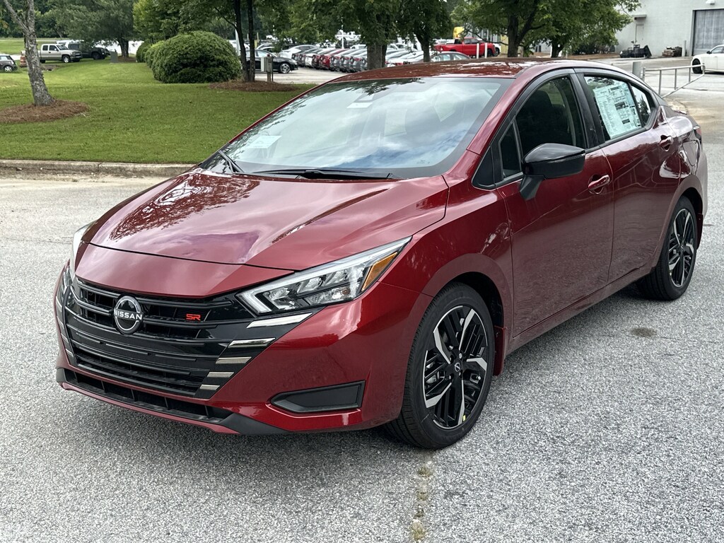 17" Aluminum Alloy Wheels, 6 Speakers, ABS brakes, Air Conditioning, Alloy wheels, AM/FM radio: SiriusXM, Apple CarPlay/Android Auto, Auto High-beam Headlights, Automatic temperature control, Blind Spot Warning, Brake assist, Bumpers: body-color, Delay-off headlights, Driver door bin, Driver vanity mirror, Dual front impact airbags, Dual front side impact airbags, Electronic Stability Control, Emergency communication system, Front anti-roll bar, Front Bucket Seats, Front Center Armrest, Front reading lights, Front wheel independent suspension, Fully automatic headlights, Heated door mirrors, Heated Front Bucket Seats, Heated front seats, Illuminated entry, Knee airbag, Leather steering wheel, Low tire pressure warning, Occupant sensing airbag, Outside temperature display, Overhead airbag, Panic alarm, Passenger door bin, Passenger vanity mirror, Power door mirrors, Power steering, Power windows, Premium Paint, Radio data system, Radio: AM/FM Audio System, Rear Parking Sensors, Rear side impact airbag, Rear window defroster, Remote keyless entry, Speed control, Split folding rear seat, Spoiler, SR Fabric Seat Trim, Steering wheel mounted audio controls, Tachometer, Telescoping steering wheel, Tilt steering wheel, Traction control, Trip computer, Turn signal indicator mirrors, Variably intermittent wipers. New vehicle price includes all manufacturer and dealer incentives. Must finance with NMAC at standard rates to receive displayed price. Cash price may vary depending on NMAC and Dealer incentives. Not everyone qualifies for NMAC financing. Price in lieu of any special APR incentives cannot be combined with other offers unless specifically disclosed by the dealer. Prices do not include tax, tag, title or Georgia Lemon Law fees. Displayed prices include dealer doc fee and electronic filing fee. All pre-owned vehicles may also be subject to additional reconditioning and certification fees. Scarlet 2025 Nissan Versa 1.6 SR FWD 1.6L I4 DOHC 16V CVT