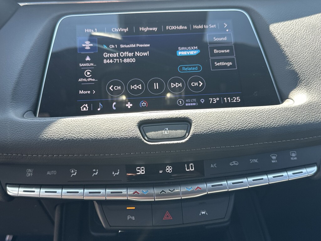 2-Way Driver Seat Power Lumbar Control, 2-Way Passenger Seat Power Lumbar Control, 3.47 Axle Ratio, 4-Wheel Disc Brakes, 4.2" Diagonal Color Display Driver Info Center, 6-Way Power Passenger Seat Adjuster, 7 Speakers, 7-Speaker Audio System w/Auxiliary Amplifier, 8-Way Power Driver Seat Adjuster, ABS brakes, Air Conditioning, Alloy wheels, AM/FM radio: SiriusXM with 360L, Apple CarPlay/Android Auto, Auto High-beam Headlights, Auto-dimming door mirrors, Auto-Dimming Inside Rear-View Mirror, Auto-dimming Rear-View mirror, Automatic Emergency Braking, Automatic temperature control, Brake assist, Bumpers: body-color, Compass, Delay-off headlights, Driver door bin, Driver vanity mirror, Dual front impact airbags, Dual front side impact airbags, Electronic Cruise Control w/Set & Resume Speed, Electronic Stability Control, Emergency communication system: OnStar and Cadillac connected services capable, Four wheel independent suspension, Front & Rear Park Assist, Front anti-roll bar, Front Bucket Seats, Front Center Armrest, Front dual zone A/C, Front reading lights, Fully automatic headlights, Garage door transmitter, HD Radio, HD Rear Vision Camera, Heated door mirrors, Illuminated entry, Knee airbag, Leather Seating Surfaces, Leather steering wheel, Low tire pressure warning, Manual Rake & Telescoping Steering Column, Memory seat, Occupant sensing airbag, Outside temperature display, Overhead airbag, Overhead console, Panic alarm, Passenger door bin, Passenger vanity mirror, Power door mirrors, Power driver seat, Power Liftgate, Power passenger seat, Power steering, Power windows, Preferred Equipment Group 1SE, Radio data system, Radio: Cadillac User Experience AM/FM Stereo, Rain sensing wipers, Rear anti-roll bar, Rear reading lights, Rear seat center armrest, Rear window defroster, Rear window wiper, Remote keyless entry, Road Emergency Tool Kit, Roof rack: rails only, Security system, SiriusXM w/360L, Speed control, Speed-sensing steering, Split folding rear seat, Spoiler, Standard Suspension, Steering wheel mounted audio controls, Tachometer, Telescoping steering wheel, Tilt steering wheel, Traction control, Trip computer, Turn signal indicator mirrors, Variably intermittent wipers, Voltmeter, Wheels: 18" 10-Spoke Pearl Nickel Finish Alloy, Wireless Apple CarPlay/Wireless Android Auto. 22/29 City/Highway MPG