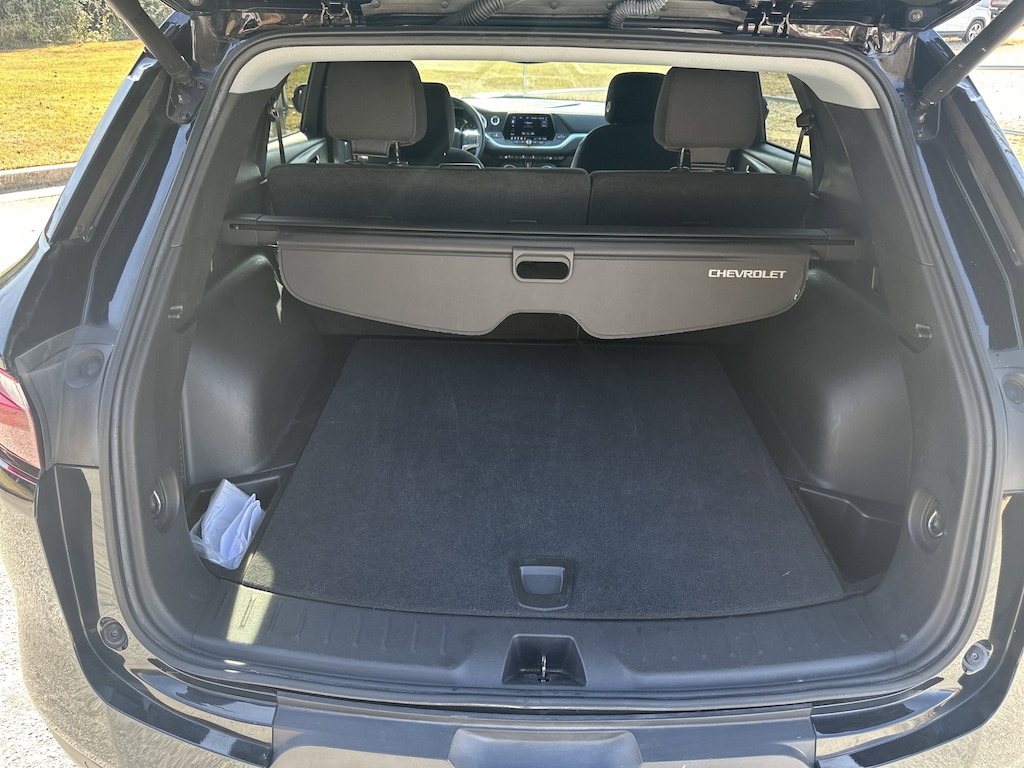 AWD, 170 Amp Alternator, 3.47 Final Drive Axle Ratio, 4-Wheel Disc Brakes, 6 Speakers, 6-Speaker Audio System Feature, ABS brakes, Air Conditioning, Alloy wheels, AM/FM radio: SiriusXM, Apple CarPlay/Android Auto, Auto High-beam Headlights, Automatic temperature control, Black Roof Rails, Brake assist, Bright Wheel Locks (LPO), Bumpers: body-color, Cargo Package (LPO), Child-Seat-Sensing Airbag, Compass, Convenience & Driver Confidence Package, Delay-off headlights, Driver door bin, Driver vanity mirror, Dual front impact airbags, Dual front side impact airbags, Electronic Stability Control, Emergency communication system: OnStar and Chevrolet connected services capable, Exterior Parking Camera Rear, Four wheel independent suspension, Front anti-roll bar, Front Bucket Seats, Front Center Armrest, Front dual zone A/C, Front reading lights, Fully automatic headlights, Heated door mirrors, Heated Driver & Front Passenger Seats, High-Intensity Discharge Headlights, Illuminated entry, Inside Rear-View Auto-Dimming Mirror, Knee airbag, Lane Change Alert w/Side Blind Zone Alert, Leather Shift Knob, Low tire pressure warning, Not Equipped w/Rear Park Assist, Occupant sensing airbag, Outside Heated Power-Adjustable Body-Color Mirrors, Outside temperature display, Overhead airbag, Overhead console, Panic alarm, Passenger door bin, Passenger vanity mirror, Power door mirrors, Power driver seat, Power steering, Power windows, Preferred Equipment Group 2LT, Premium Cloth Seat Trim, Radio data system, Radio: Chevrolet Infotainment 3 System, Rear anti-roll bar, Rear Cross Traffic Alert, Rear Park Assist w/Audible Warning, Rear Power Programmable Liftgate, Rear reading lights, Rear seat center armrest, Rear window defroster, Rear window wiper, Remote keyless entry, Remote Start, Retractable Cargo Shade, Ride & Handling Suspension, Security system, SiriusXM Radio, Speed control, Speed-sensing steering, Split folding rear seat, Spoiler, Steering wheel mounted audio controls, Tachometer, Telescoping steering wheel, Tilt steering wheel, Traction control, Trip computer, Universal Home Remote, Variably intermittent wipers, Vertical Cargo Net (LPO), Voltmeter, Wheels: 18" Bright Silver Aluminum, AWD. 22/27 City/Highway MPG CARFAX One-Owner.