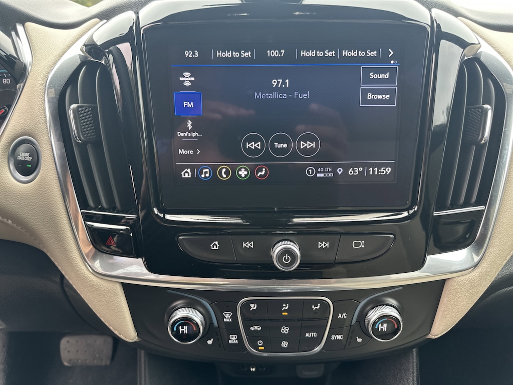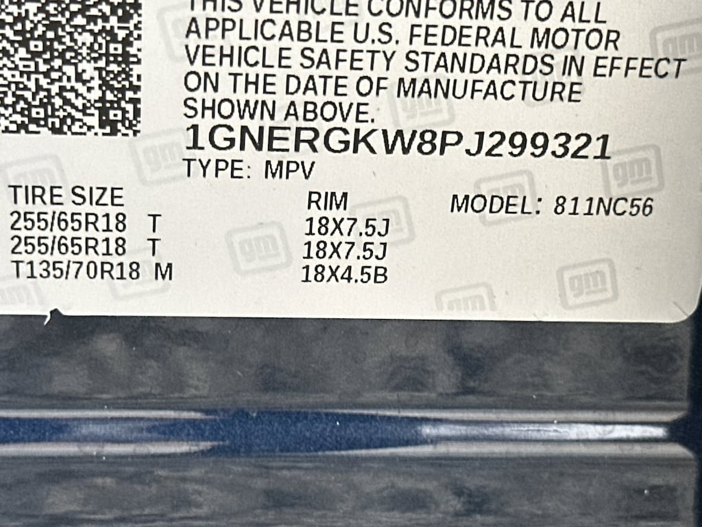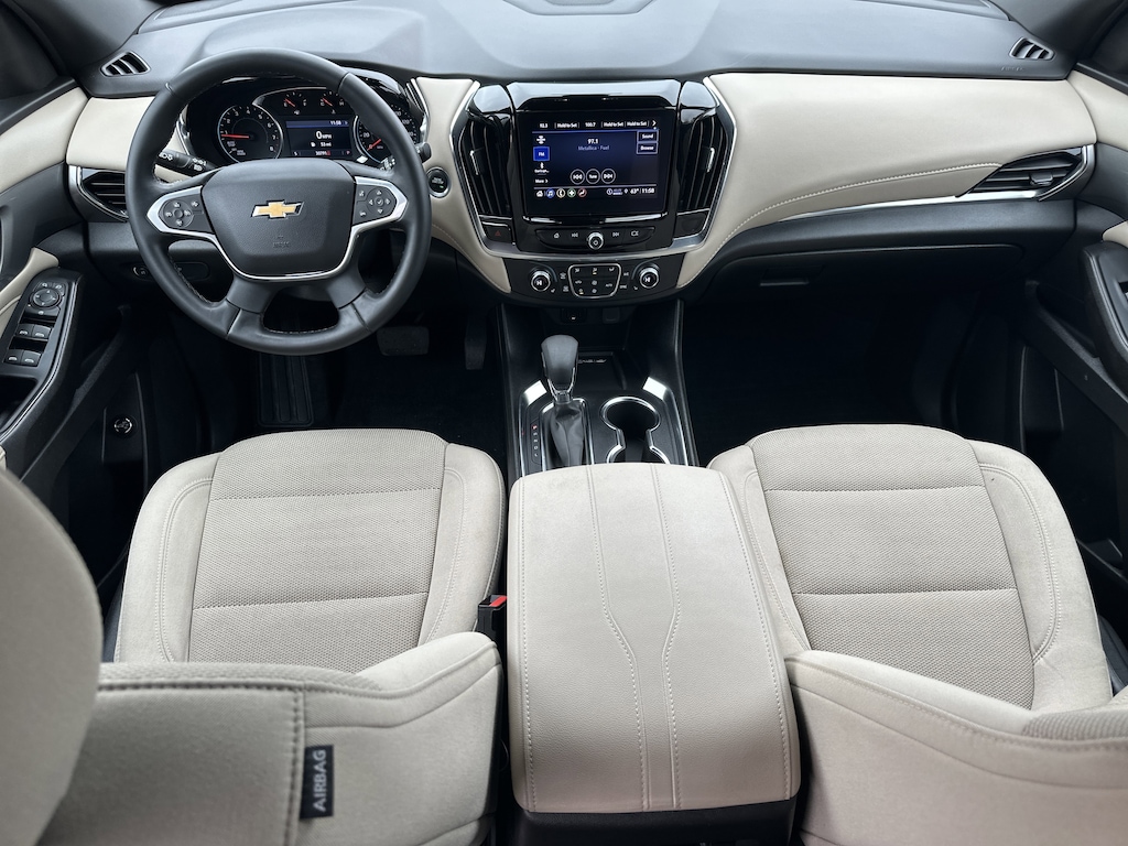 1st & 2nd Row All-Weather Floor Liner (LPO), 2-Way Manual Front Passenger Seat Adjuster, 3.49 Axle Ratio, 3rd Row All-Weather Floor Liner (LPO), 3rd row seats: split-bench, 4-Wheel Disc Brakes, 4.2" Multi-Color Enhanced Driver Instrument Display, 6 Speakers, 6-Speaker Audio System Feature, 8-Way Power Driver Seat Adjuster, ABS brakes, Air Conditioning, Alloy wheels, AM/FM radio: SiriusXM, Apple CarPlay/Android Auto, Auto High-beam Headlights, Automatic temperature control, Black Roof Rails, Brake assist, Bumpers: body-color, Compass, Convenience & Driver Confidence Package, Delay-off headlights, Driver door bin, Driver vanity mirror, Dual front impact airbags, Dual front side impact airbags, Electronic Stability Control, Emergency communication system, Exterior Parking Camera Rear, Floor Liner Package (LPO), Four wheel independent suspension, Front anti-roll bar, Front Bucket Seats, Front Center Armrest, Front dual zone A/C, Front reading lights, Fully automatic headlights, Heated door mirrors, Heated Driver & Front Passenger Seats, Illuminated entry, Integrated Cargo Liner (LPO), Leather steering wheel, Low tire pressure warning, Not Equipped w/Rear Park Assist (060), Occupant sensing airbag, Outside temperature display, Overhead airbag, Overhead console, Panic alarm, Passenger door bin, Passenger vanity mirror, Power door mirrors, Power Driver Lumbar Control, Power driver seat, Power steering, Power windows, Preferred Equipment Group 1LT, Premium Cloth Seat Trim, Radio data system, Radio: Chevrolet Infotainment 3 Plus System, Radio: Chevrolet Infotainment System AM/FM Stereo, Rear air conditioning, Rear anti-roll bar, Rear Power Liftgate, Rear reading lights, Rear window defroster, Rear window wiper, Remote keyless entry, Remote Start, Security system, SiriusXM Radio, SiriusXM w/360L, Speed control, Speed-sensing steering, Spoiler, Steering wheel mounted audio controls, Tachometer, Telescoping steering wheel, Tilt steering wheel, Traction control, Trip computer, Turn signal indicator mirrors, Universal Home Remote, Variably intermittent wipers, Voltmeter, Wheels: 18" Bright Silver-Painted Aluminum. 18/27 City/Highway MPG CARFAX One-Owner.
