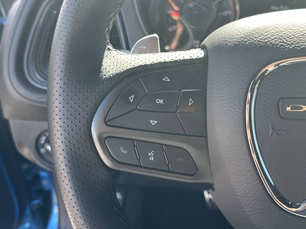 Blacktop Package: Black Fuel Filler Door; Gloss Black Instrument Panel Cluster Trim Rings; Satin Black Dodge Tail Lamp Badge; GT Black Grille Badge; 20 X 8.0 Black Noise Painted Wheels; Black Grille with Bezel; Rhombi 2 Piece Wheel Center Cap; Challenger Blacktop Grille Badge. Plus Package: Google Android Auto; Dodge Performance Pages; USB Host Flip; 276 Watt Amplifier; Blind Spot and Cross Path Detection; Compass Gauge; Integrated Center Stack Radio; For Details. Visit DriveUconnect.com; Uconnect 4C Radio with 8.4 Display; Power Multi-Function Foldaway Mirrors; Bright Pedals; Front Fog Lamps; Integrated Voice Command with Bluetooth; Shark Fin Antenna; 4G LTE Wi-Fi Hot Spot; GPS Antenna Input; Locking Lug Nuts; Exterior Mirrors with Heating Element; Door Trim Panel with Ambient Lighting; Media Hub (2 USB. Aux); Heated Steering Wheel; 8.4 Touchscreen Display; Nappa/Alcantara Performance Seats; Deluxe Security Alarm; Apple CarPlay; Power Tilt/telescope Steering Column; SiriusXM Satellite Radio; HD Radio; Steering Wheel Mounted Shift Control; Black-Edged Premium Floormats; 1-Year SiriusXM Guardian Trial; Premium-Stitched Dash Panel; High Intensity Discharge Headlamps; Body Color Exterior Mirrors; Leather Performance Steering Wheel; Rhombi 2 Piece Wheel Center Cap. Quick Order Package 2EL. Alpine Audio Group with Subwoofer: 506 Watt Amplifier; 9 Amplified Speakers with Subwoofer; Surround Sound. SiriusXM Satellite Radio. B5 Blue Pearlcoat. **Equipment listed is based on original vehicle build and subject to change. Please confirm the accuracy of the included equipment by calling the dealer prior to purchase.**