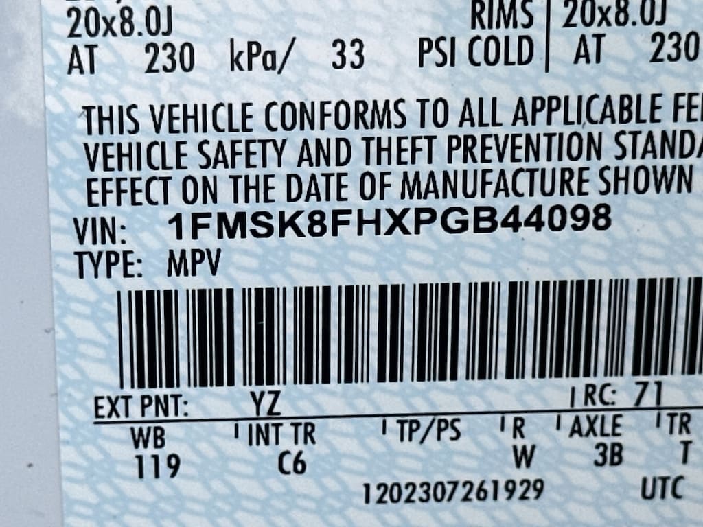 4WD, 12 Speakers, 20" Premium Painted Aluminum Wheels, 2nd Row 35/30/35 Bench w/E-Z Entry & Armrest, 3.58 Non-Limited-Slip Rear Axle Ratio, 3rd row seats: bench, 4-Wheel Disc Brakes, 4G LTE Wi-Fi Hotspot Credit, ABS brakes, Air Conditioning, Alloy wheels, AM/FM radio: SiriusXM, Auto High-beam Headlights, Auto-dimming Rear-View mirror, Automatic temperature control, Brake assist, Bumpers: body-color, Compass, Delay-off headlights, Driver door bin, Driver vanity mirror, Dual front impact airbags, Dual front side impact airbags, Electronic Stability Control, Emergency communication system: SYNC 3 911 Assist, Equipment Group 300A, Exterior Parking Camera Rear, FordPass Connect, Four wheel independent suspension, Front anti-roll bar, Front Bucket Seats, Front Center Armrest, Front dual zone A/C, Front fog lights, Front reading lights, Fully automatic headlights, Garage door transmitter, Heated door mirrors, Heated front seats, Heated rear seats, Heated steering wheel, Illuminated entry, Knee airbag, Leather Heated/Ventilated Captain's Chairs, Leather steering wheel, Low tire pressure warning, Navigation System, Occupant sensing airbag, Outside temperature display, Overhead airbag, Overhead console, Panic alarm, Passenger door bin, Passenger vanity mirror, Power door mirrors, Power driver seat, Power Liftgate, Power passenger seat, Power steering, Power windows, Radio data system, Radio: B&O Sound System by Bang & Olufsen, Rain sensing wipers, Rear air conditioning, Rear anti-roll bar, Rear reading lights, Rear window defroster, Rear window wiper, Remote keyless entry, Roof rack: rails only, Security system, Speed control, Speed-sensing steering, Speed-Sensitive Wipers, Split folding rear seat, Spoiler, Steering wheel mounted audio controls, SYNC 3 Communications & Entertainment System, SYNC 3/Apple CarPlay/Android Auto, Tachometer, Telescoping steering wheel, Tilt steering wheel, Traction control, Trip computer, Variably intermittent wipers, Ventilated front seats, Voice-Activated Touchscreen Navigation System, 4WD. 20/27 City/Highway MPG CARFAX One-Owner.