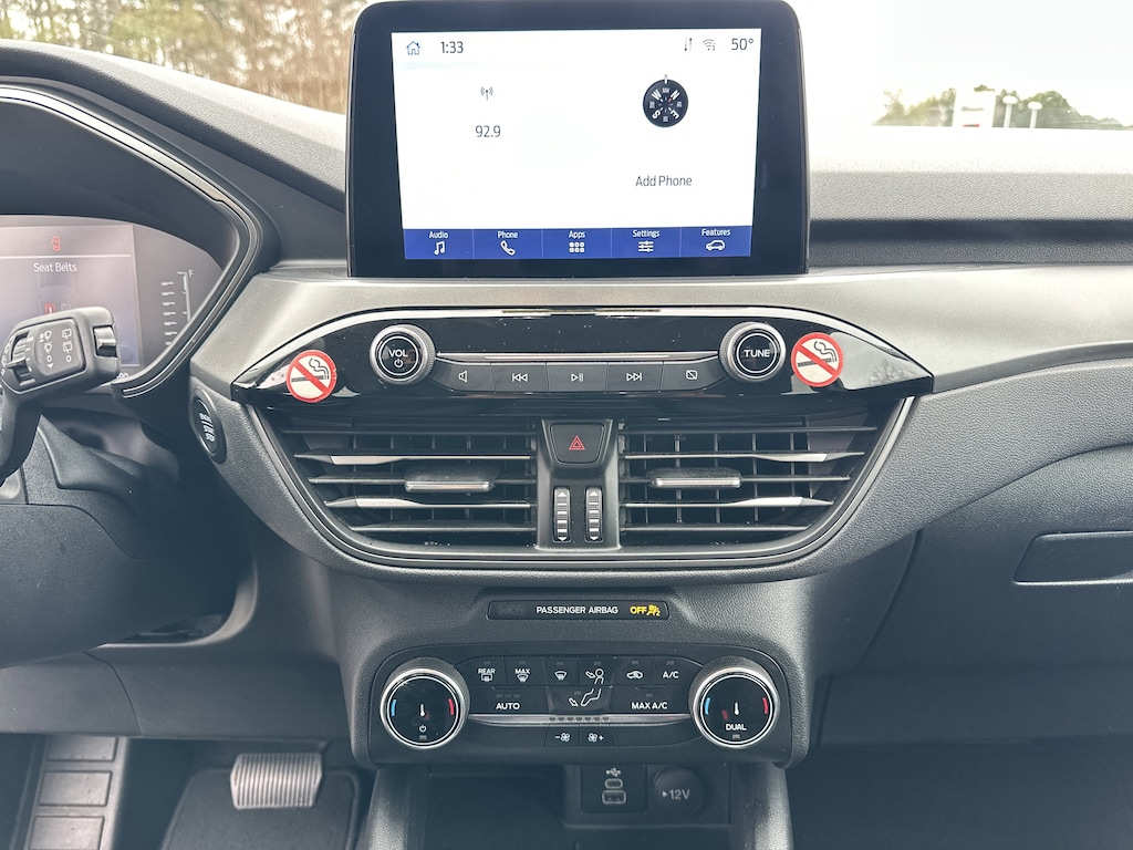 3.81 Axle Ratio, 4-Wheel Disc Brakes, 6 Speakers, ABS brakes, Air Conditioning, Alloy wheels, AM/FM radio: SiriusXM, AM/FM Stereo, Auto High-beam Headlights, Automatic temperature control, Brake assist, Bumpers: body-color, Compass, Delay-off headlights, Driver door bin, Driver vanity mirror, Dual front impact airbags, Dual front side impact airbags, Electronic Stability Control, Emergency communication system: SYNC 4 911 Assist, Equipment Group 200A, Exterior Parking Camera Rear, FordPass Connect, Four wheel independent suspension, Front anti-roll bar, Front Bucket Seats, Front Center Armrest, Front dual zone A/C, Front reading lights, Fully automatic headlights, Illuminated entry, Knee airbag, Low tire pressure warning, Occupant sensing airbag, Outside temperature display, Overhead airbag, Overhead console, Panic alarm, Passenger door bin, Passenger vanity mirror, Power door mirrors, Power driver seat, Power Liftgate, Power steering, Power windows, Radio data system, Rear anti-roll bar, Rear reading lights, Rear seat center armrest, Rear window defroster, Rear window wiper, Remote keyless entry, Speed control, Speed-sensing steering, Speed-Sensitive Wipers, Split folding rear seat, Spoiler, Steering wheel mounted audio controls, SYNC 4, Tachometer, Telescoping steering wheel, Tilt steering wheel, Traction control, Trip computer, Unique Cloth Front Bucket Seats, Variably intermittent wipers, Wheels: 17" Shadow Silver-Painted Aluminum. 27/34 City/Highway MPG Clean CARFAX. CARFAX One-Owner.