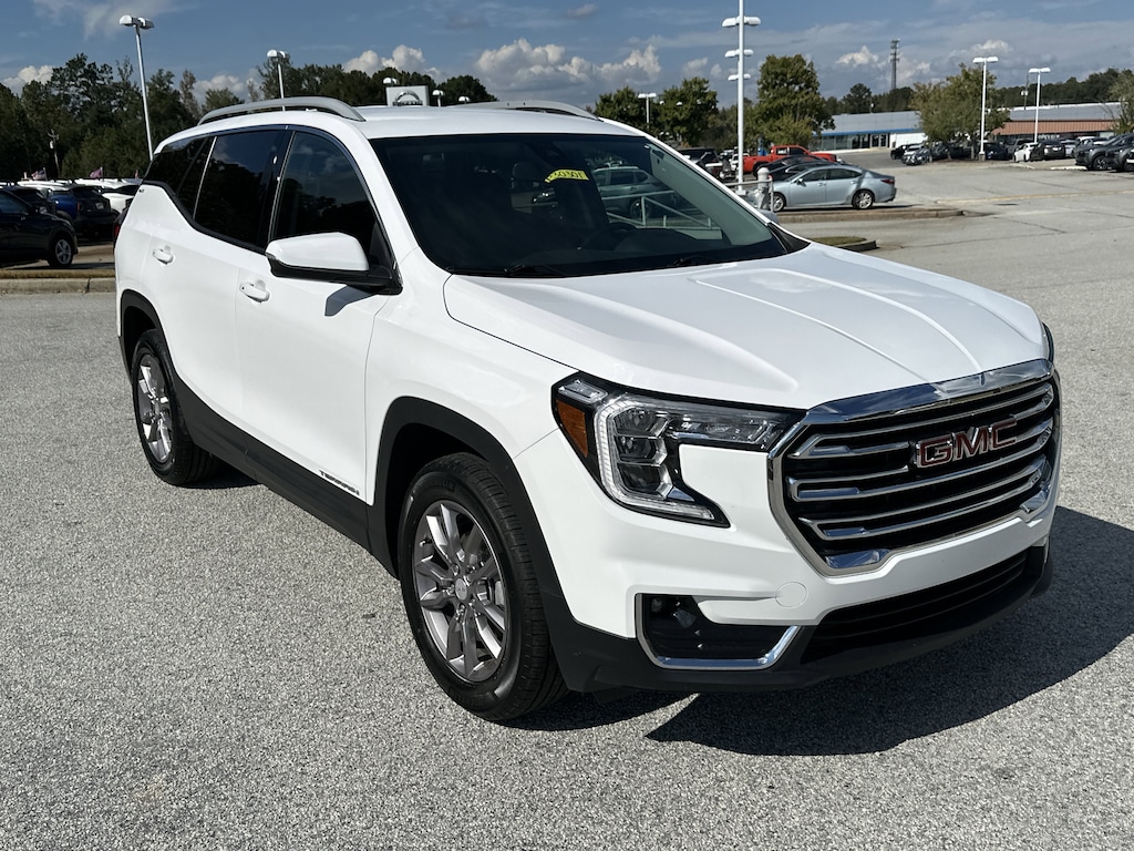 AWD, 2 USB Data Ports, 2 USB Data Ports w/SD Card Reader, 3.47 Final Drive Axle Ratio, 4-Wheel Disc Brakes, 6 Speakers, 6-Speaker Audio System Feature, 6-Way Power Front Passenger Seat, 8-Way Power Driver Seat Adjuster, ABS brakes, Air Conditioning, Alloy wheels, AM/FM radio: SiriusXM, Auto High-beam Headlights, Auto-dimming Rear-View mirror, Automatic temperature control, Bluetooth® For Phone, Brake assist, Bumpers: body-color, Compass, Delay-off headlights, Driver & Front Passenger Heated Seats, Driver door bin, Driver vanity mirror, Dual front impact airbags, Dual front side impact airbags, Electronic Stability Control, Emergency communication system: OnStar and GMC connected services capable, Four wheel independent suspension, Front anti-roll bar, Front Bucket Seats, Front Center Armrest, Front dual zone A/C, Front fog lights, Front Passenger 2-Way Power Lumbar, Front reading lights, Fully automatic headlights, Garage door transmitter, Heated door mirrors, Heated front seats, Heated steering wheel, Illuminated entry, Low tire pressure warning, Memory seat, Occupant sensing airbag, Outside temperature display, Overhead airbag, Overhead console, Panic alarm, Passenger door bin, Passenger vanity mirror, Perforated Leather-Appointed Seat Trim, Power door mirrors, Power Driver Lumbar Control, Power driver seat, Power Liftgate, Power passenger seat, Power steering, Power windows, Preferred Equipment Group 4SA, Radio data system, Radio: GMC Infotainment Audio System w/8" Display, Rear anti-roll bar, Rear seat center armrest, Rear window defroster, Rear window wiper, Remote keyless entry, Roof rack: rails only, Security system, SiriusXM, Speed control, Speed-sensing steering, Split folding rear seat, Spoiler, Steering wheel mounted audio controls, Tachometer, Telescoping steering wheel, Tilt steering wheel, Traction control, Trip computer, Turn signal indicator mirrors, Variably intermittent wipers, Wheels: 18" x 7" Silver Painted Aluminum, Wireless Apple CarPlay/Wireless Android Auto, AWD. 23/28 City/Highway MPG CARFAX One-Owner.