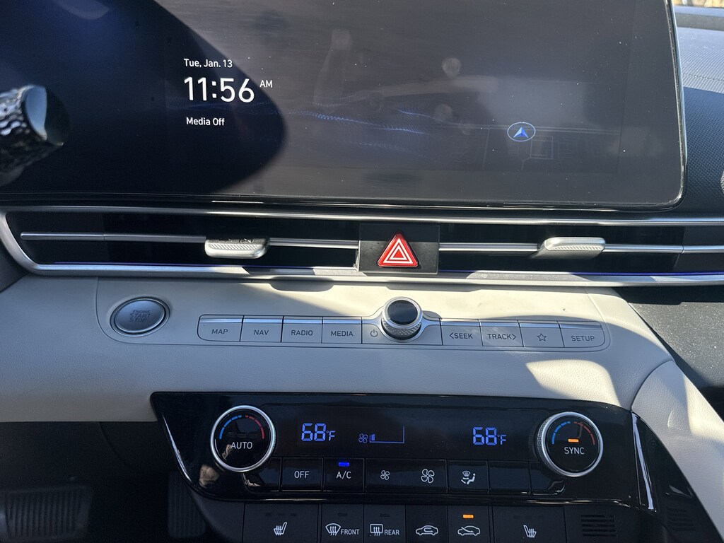 17" x 7.0J Alloy Wheels, 4-Wheel Disc Brakes, 8 Speakers, ABS brakes, Air Conditioning, Alloy wheels, AM/FM radio: SiriusXM, Apple CarPlay & Android Auto, Auto High-beam Headlights, Auto-dimming Rear-View mirror, Automatic temperature control, Brake assist, Bumpers: body-color, Delay-off headlights, Driver door bin, Driver vanity mirror, Dual front impact airbags, Dual front side impact airbags, Electronic Stability Control, Emergency communication system: Bluelink+, Front anti-roll bar, Front Bucket Seats, Front Center Armrest, Front dual zone A/C, Front reading lights, Front wheel independent suspension, Fully automatic headlights, Heated door mirrors, Heated Front Bucket Seats, Heated front seats, Illuminated entry, Leatherette Seats, Low tire pressure warning, Navigation System, Occupant sensing airbag, Option Group 01, Outside temperature display, Overhead airbag, Overhead console, Panic alarm, Passenger door bin, Passenger vanity mirror, Power door mirrors, Power driver seat, Power moonroof, Power steering, Power windows, Radio: AM/FM/HD/SiriusXM Display Audio, Rear seat center armrest, Rear side impact airbag, Rear window defroster, Remote keyless entry, Security system, Speed control, Speed-sensing steering, Split folding rear seat, Steering wheel mounted audio controls, Tachometer, Telescoping steering wheel, Tilt steering wheel, Traction control, Trip computer, Turn signal indicator mirrors, Variably intermittent wipers. 31/40 City/Highway MPG CARFAX One-Owner.