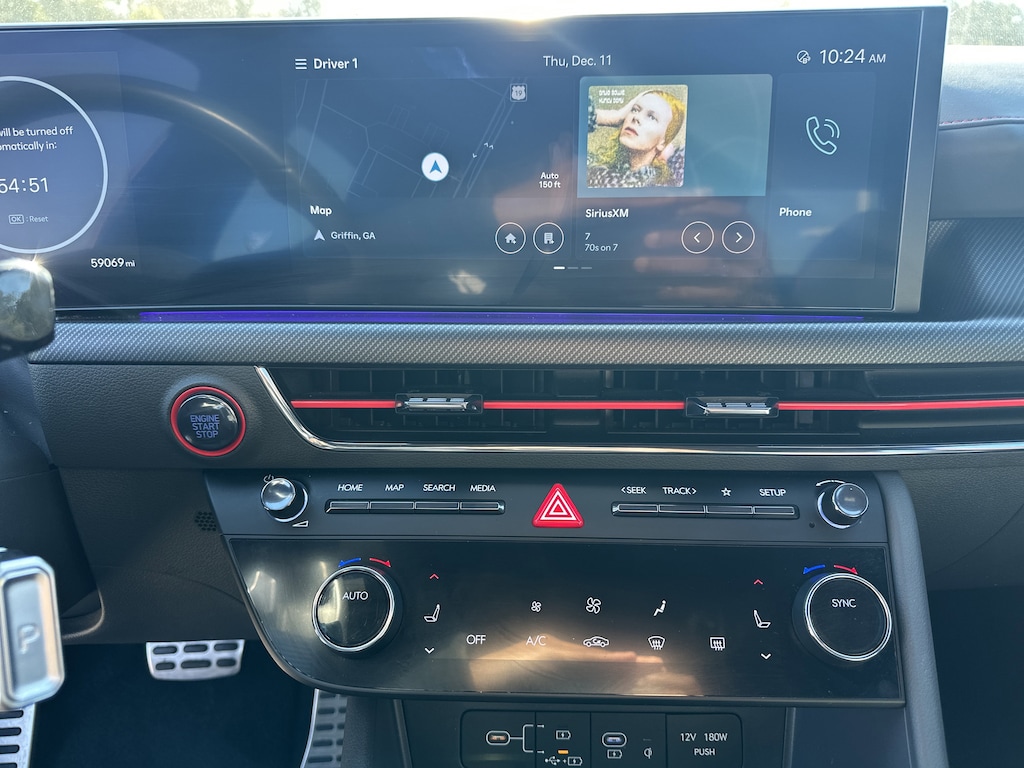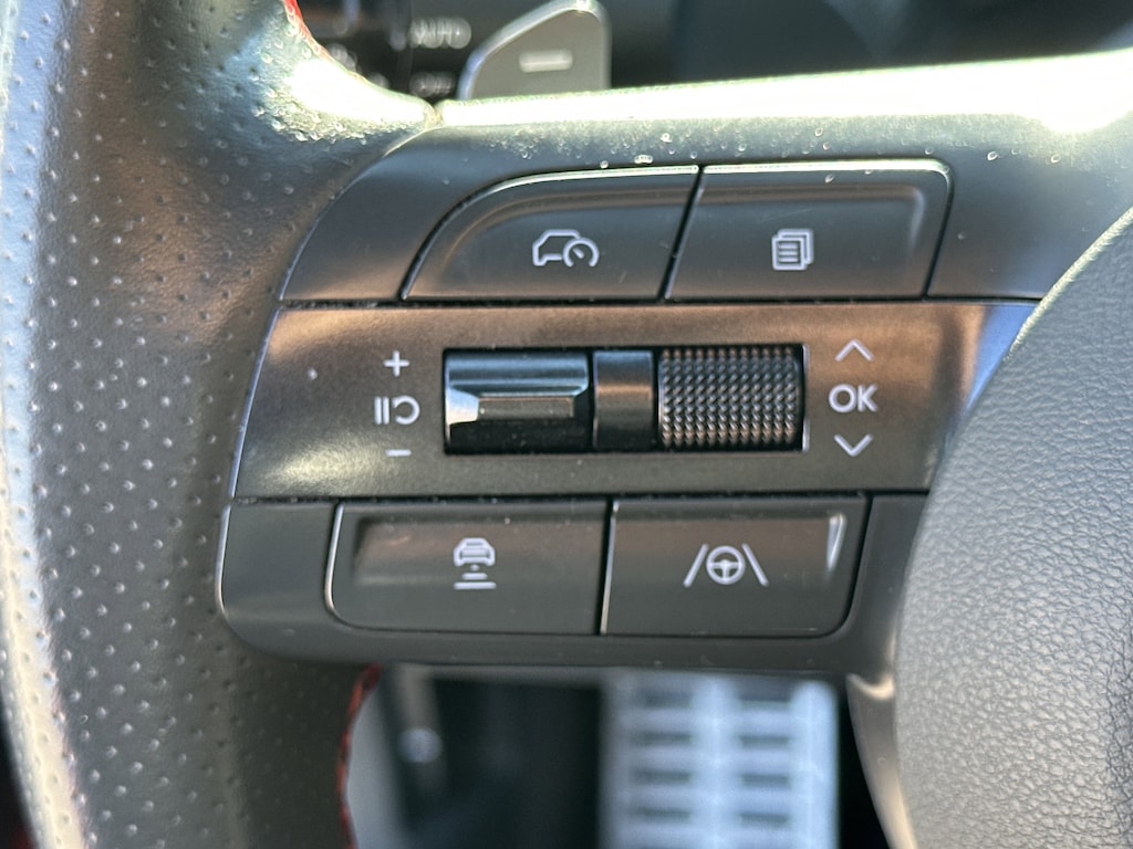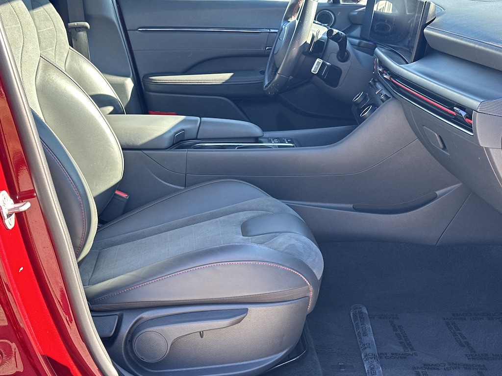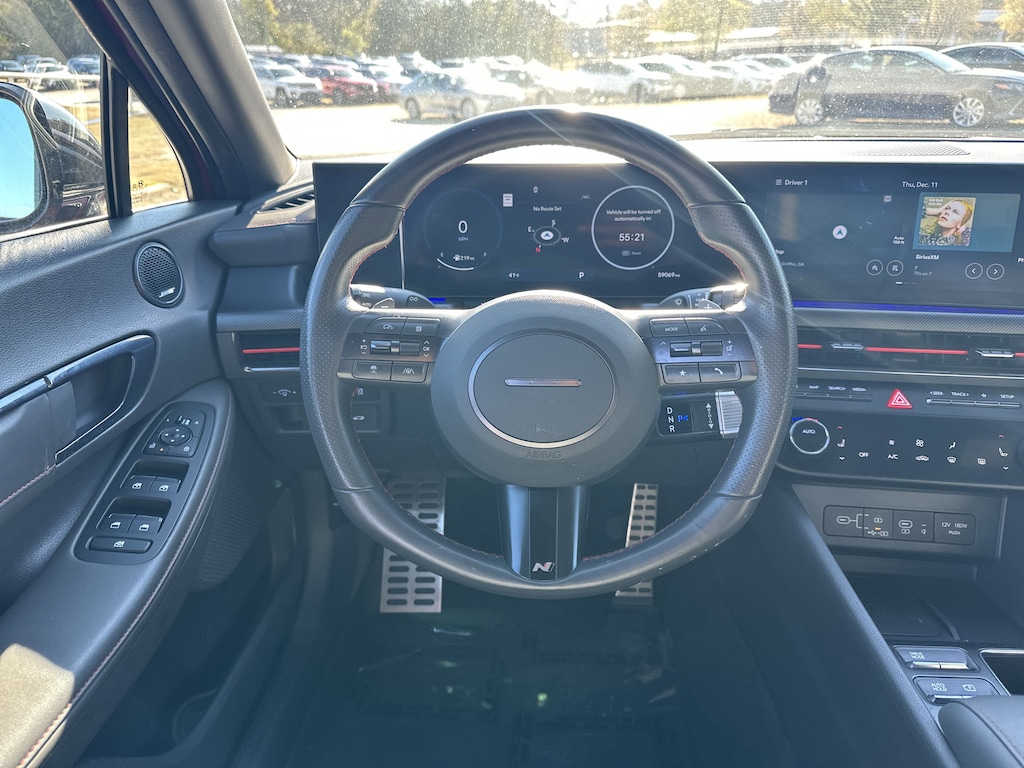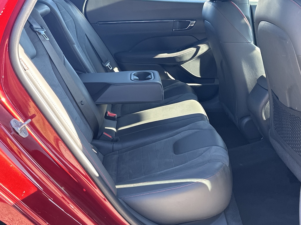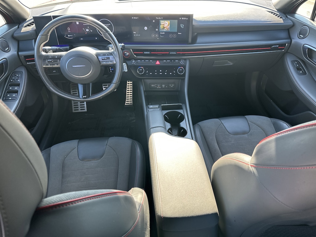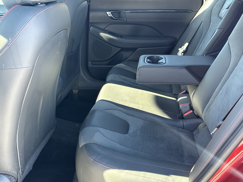 Black Premium Synthetic, 12 Speakers, 4-Wheel Disc Brakes, ABS brakes, Air Conditioning, Alloy wheels, AM/FM radio: SiriusXM, Apple CarPlay & Android Auto, Auto High-beam Headlights, Auto-dimming Rear-View mirror, Automatic temperature control, Brake assist, Delay-off headlights, Driver door bin, Driver vanity mirror, Dual front impact airbags, Dual front side impact airbags, Electronic Stability Control, Exterior Parking Camera Rear, Four wheel independent suspension, Front anti-roll bar, Front Bucket Seats, Front dual zone A/C, Front reading lights, Fully automatic headlights, Heated door mirrors, Heated front seats, Illuminated entry, Knee airbag, Leather steering wheel, Low tire pressure warning, Navigation System, Occupant sensing airbag, Outside temperature display, Overhead airbag, Overhead console, Panic alarm, Passenger door bin, Passenger vanity mirror, Power door mirrors, Power driver seat, Power moonroof, Power steering, Power windows, Radio data system, Rear anti-roll bar, Rear side impact airbag, Rear window defroster, Remote keyless entry, Security system, Speed control, Speed-sensing steering, Speed-Sensitive Wipers, Split folding rear seat, Spoiler, Steering wheel mounted audio controls, Tachometer, Telescoping steering wheel, Tilt steering wheel, Traction control, Trip computer, Variably intermittent wipers, Wheels: N Line 19" x 8.0J Aluminum Alloy, Black Premium Synthetic. 23/32 City/Highway MPG Clean CARFAX. CARFAX One-Owner.
