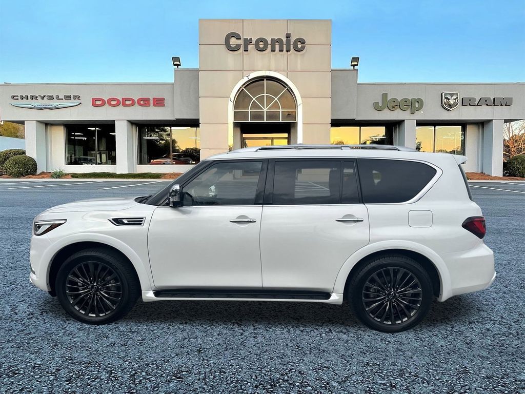 This 1/2 ton suv features a hands-free Bluetooth phone system. The installed navigation system will keep you on the right path. The leather seats in the vehicle are a must for buyers looking for comfort, durability, and style. This unit offers Apple CarPlay for seamless connectivity. Start the vehicle from inside with remote start. This 2024 INFINITI QX80 is pure luxury with a heated steering wheel. This 2024 INFINITI QX80 offers Android Auto for seamless smartphone integration. See what's behind you with the back up camera on this INFINITI QX80. The vehicle has a clean CARFAX vehicle history report. This INFINITI QX80's Forward Collision Warning feature alerts drivers to potential front-end collisions. It features a high end BOSE stereo system. This vehicle is a certified CARFAX 1-owner. Enjoy the convenience of the power liftgate on the INFINITI QX80. This 2024 INFINITI QX80 shines with clean polished lines coated with an elegant white finish.