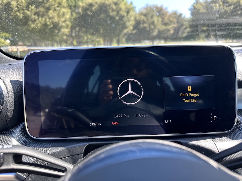 Bluetooth for Phone>>, 11.9" Center Touchscreen Display, 18" 5-Spoke Wheels, 4-way Power Driver's Lumbar Support, 4-Wheel Disc Brakes, 5 Speakers, ABS brakes, Air Conditioning, Alloy wheels, AM/FM radio, Anti-whiplash front head restraints, Apple CarPlay®/Android Auto®, Auto High-beam Headlights, Auto tilt-away steering wheel, Auto-dimming door mirrors, Auto-dimming Rear-View mirror, Automatic temperature control, Brake assist, Bumpers: body-color, Child-Seat-Sensing Airbag, Compass, Delay-off headlights, Driver door bin, Driver vanity mirror, Dual front impact airbags, Dual front side impact airbags, Electronic Stability Control, Emergency communication system: Mercedes-Benz Emergency Call Service, Exterior Parking Camera Rear, Four wheel independent suspension, Front anti-roll bar, Front Bucket Seats, Front Center Armrest, Front dual zone A/C, Front reading lights, Fully automatic headlights, Garage door transmitter: HomeLink, Genuine wood dashboard insert, Head restraints memory, Heated door mirrors, Heated front seats, Illuminated entry, Knee airbag, Low tire pressure warning, MB-Tex Upholstery, Memory seat, Occupant sensing airbag, Outside temperature display, Overhead airbag, Overhead console, Panic alarm, Passenger door bin, Passenger vanity mirror, Power adjustable front head restraints, Power door mirrors, Power driver seat, Power Heated Front Seats w/Memory, Power moonroof, Power passenger seat, Power steering, Power windows, Premium audio system: MBUX, Premium Trim Package, Radio data system, Radio: FrontBass 5-Speaker Audio System, Rain sensing wipers, Rear anti-roll bar, Rear fog lights, Rear reading lights, Rear seat center armrest, Rear window defroster, Remote keyless entry, Security system, Speed control, Speed-sensing steering, Split folding rear seat, Steering wheel memory, Steering wheel mounted audio controls, Tachometer, Telescoping steering wheel, Tilt steering wheel, Traction control, Trip computer, Turn signal indicator mirrors, Variably intermittent wipers, Weather band radio. 25/36 City/Highway MPG CARFAX One-Owner.