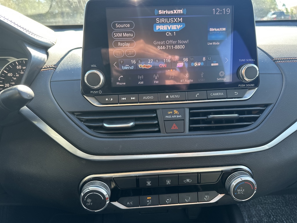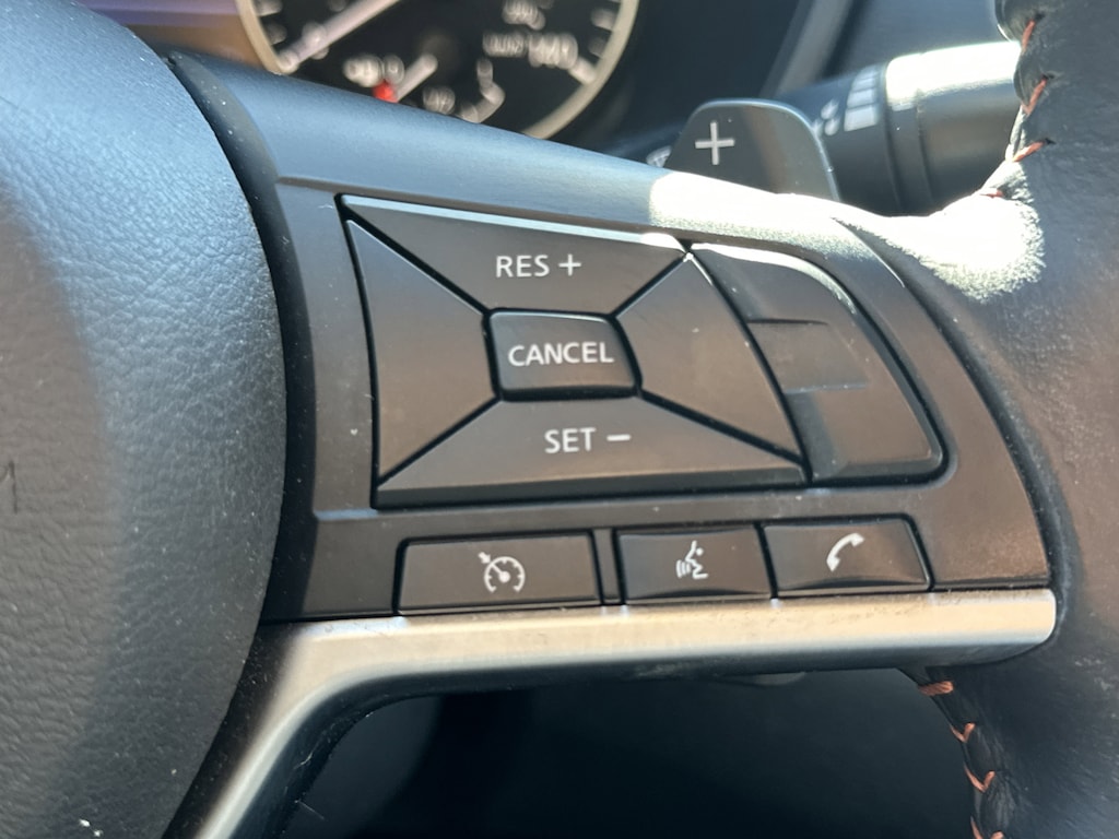 CVT with Xtronic, 4-Wheel Disc Brakes, 6 Speakers, ABS brakes, Air Conditioning, Alloy wheels, AM/FM radio: SiriusXM, Auto High-beam Headlights, Blind Spot Warning, Brake assist, Bumpers: body-color, Delay-off headlights, Driver door bin, Driver vanity mirror, Dual front impact airbags, Dual front side impact airbags, Electronic Stability Control, Four wheel independent suspension, Front anti-roll bar, Front Bucket Seats, Front Center Armrest, Front reading lights, Front Sport Bucket Seats, Fully automatic headlights, Illuminated entry, Knee airbag, Leather Shift Knob, Low tire pressure warning, NissanConnect featuring Apple CarPlay and Android Auto, Occupant sensing airbag, Outside temperature display, Overhead airbag, Overhead console, Panic alarm, Passenger door bin, Passenger vanity mirror, Power door mirrors, Power driver seat, Power steering, Power windows, Radio data system, Radio: AM/FM Audio System, Rear anti-roll bar, Rear Parking Sensors, Rear reading lights, Rear seat center armrest, Rear side impact airbag, Rear window defroster, Remote keyless entry, Security system, Speed control, Speed-sensing steering, Speed-Sensitive Wipers, Split folding rear seat, Sport Seat Trim, Sport steering wheel, SR Floor Mats/Trunk Mat/Hideaway Nets, Steering wheel mounted audio controls, Tachometer, Telescoping steering wheel, Tilt steering wheel, Traction control, Trip computer, Variably intermittent wipers, Wheels: 19" Machined Alloy, CVT with Xtronic. 27/37 City/Highway MPG Clean CARFAX.