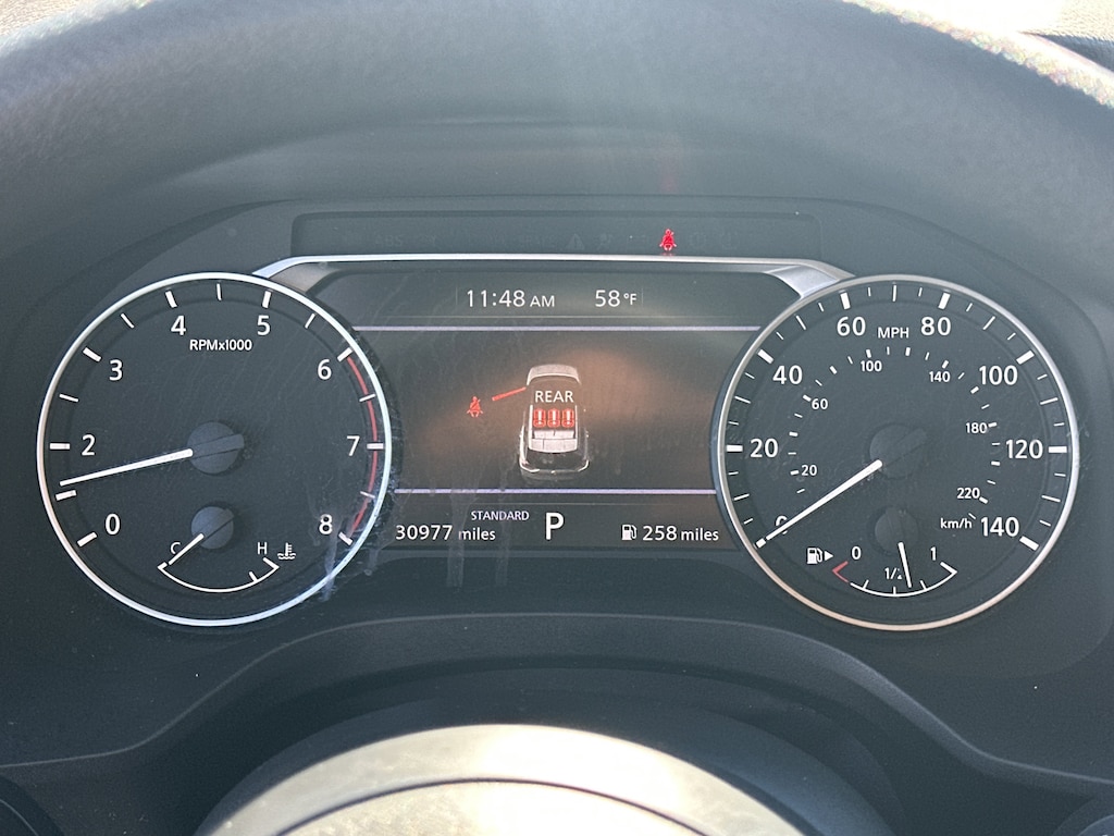 17" Aluminum Alloy Wheels, 4 Speakers, 4-Wheel Disc Brakes, 5.604 Axle Ratio, ABS brakes, Air Conditioning, Alloy wheels, AM/FM Radio, AM/FM radio: SiriusXM, Auto High-beam Headlights, Black Splash Guards (Set of 4), Blind Spot Warning, Brake assist, Bumpers: body-color, Cloth Seat Trim, Delay-off headlights, Driver door bin, Driver vanity mirror, Dual front impact airbags, Dual front side impact airbags, Electronic Stability Control, First Aid Kit, Floor Mats w/1-Piece Cargo Area Protector, Four wheel independent suspension, Front anti-roll bar, Front Bucket Seats, Front Center Armrest, Front reading lights, Fully automatic headlights, Illuminated entry, Knee airbag, Low tire pressure warning, NissanConnect featuring Apple CarPlay and Android Auto, Occupant sensing airbag, Outside temperature display, Overhead airbag, Overhead console, Panic alarm, Passenger door bin, Passenger vanity mirror, Power door mirrors, Power steering, Power windows, Radio data system, Rear anti-roll bar, Rear Parking Sensors, Rear seat center armrest, Rear side impact airbag, Rear window defroster, Rear window wiper, Remote keyless entry, Speed control, Speed-Sensitive Wipers, Split folding rear seat, Spoiler, Steering wheel mounted audio controls, Tachometer, Telescoping steering wheel, Tilt steering wheel, Traction control, Trip computer, Variably intermittent wipers. 30/37 City/Highway MPG Clean CARFAX. CARFAX One-Owner.