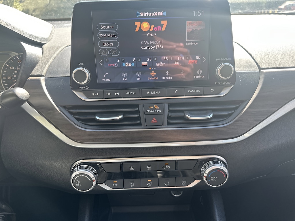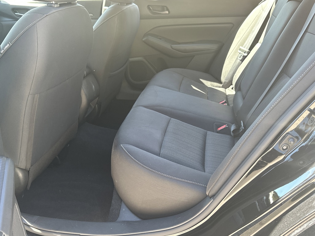 CVT with Xtronic, 17" Alloy Wheels, 4-Wheel Disc Brakes, 6 Speakers, ABS brakes, Air Conditioning, Alloy wheels, AM/FM radio: SiriusXM, Auto High-beam Headlights, Blind Spot Warning, Brake assist, Bumpers: body-color, Cloth Seat Trim, Delay-off headlights, Driver door bin, Driver vanity mirror, Dual front impact airbags, Dual front side impact airbags, Electronic Stability Control, Floor Mats/Trunk Mat/Hideaway Net, Four wheel independent suspension, Front anti-roll bar, Front Bucket Seats, Front Center Armrest, Front reading lights, Fully automatic headlights, Illuminated entry, Knee airbag, Low tire pressure warning, NissanConnect featuring Apple CarPlay, Occupant sensing airbag, Outside temperature display, Overhead airbag, Overhead console, Panic alarm, Passenger door bin, Passenger vanity mirror, Power door mirrors, Power driver seat, Power steering, Power windows, Radio data system, Radio: AM/FM Audio System, Rear anti-roll bar, Rear Parking Sensors, Rear reading lights, Rear seat center armrest, Rear side impact airbag, Rear window defroster, Remote keyless entry, Security system, Speed control, Speed-sensing steering, Speed-Sensitive Wipers, Split folding rear seat, Steering wheel mounted audio controls, Tachometer, Telescoping steering wheel, Tilt steering wheel, Traction control, Trip computer, Variably intermittent wipers, CVT with Xtronic. 27/39 City/Highway MPG Clean CARFAX. CARFAX One-Owner.