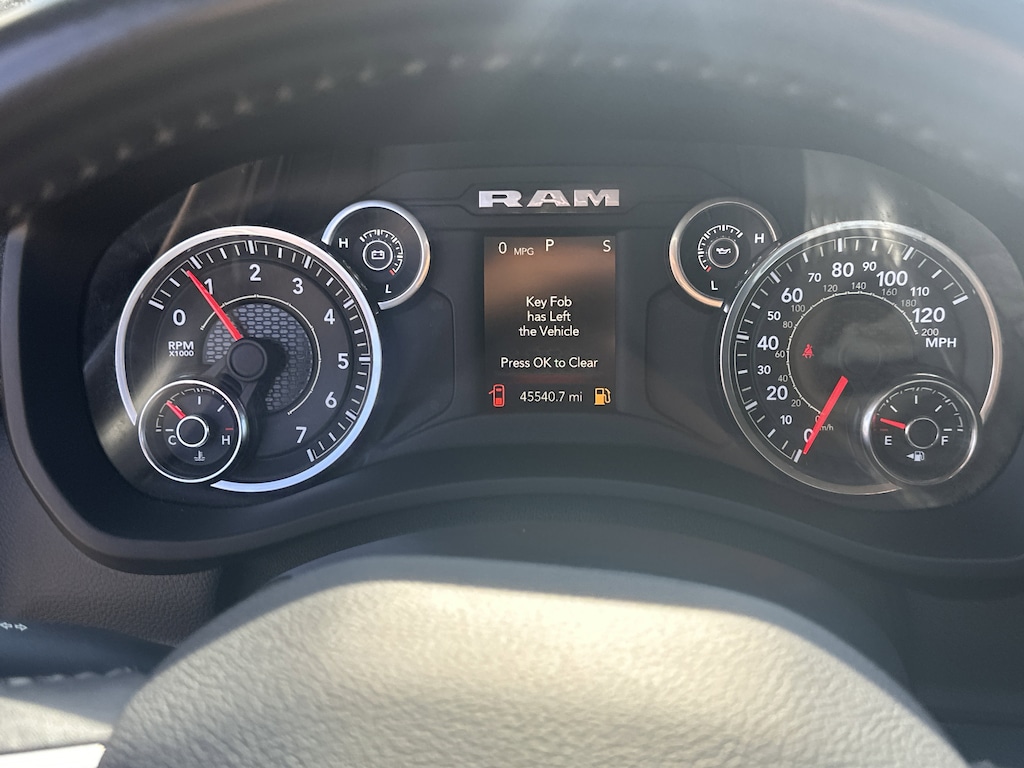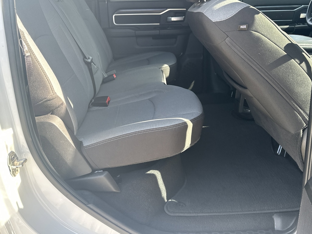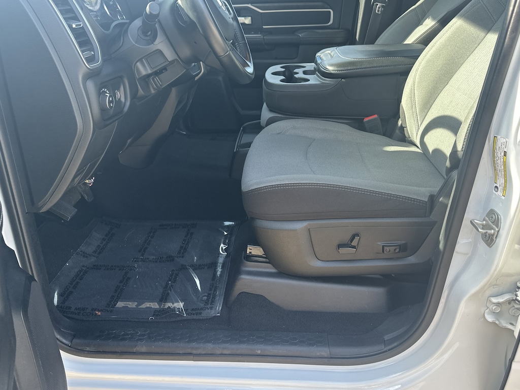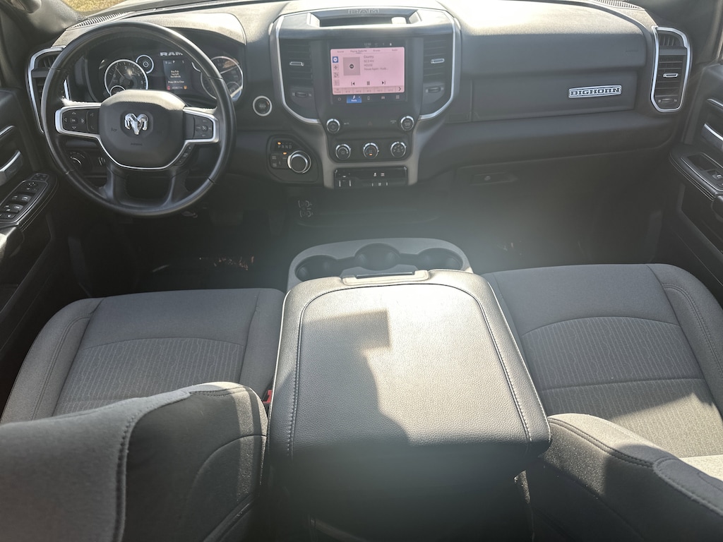 2 Way Rear Headrest Seat, 2nd Row In Floor Storage Bins, 3.73 Axle Ratio, 4 Way Front Headrests, 4-Wheel Disc Brakes, 40/20/40 Split Bench Seat, 4G LTE Wi-Fi Hot Spot, 6 Speakers, 8.4" Touchscreen Display, ABS brakes, Active Noise Control System, Air Conditioning, Apple CarPlay, Auto Power-Folding Mirrors, Big Horn IP Badge, Black Exterior Mirrors, Bluetooth Handsfree Phone & Audio, Brake assist, Bumpers: chrome, Center Hub, Center Stack Storage Drawer, Chrome Flat Cab-Length Side Steps, Cloth 40/20/40 Bench Seat, Compass, Connectivity - US/Canada, Delay-off headlights, Driver door bin, Dual front impact airbags, Dual front side impact airbags, Dual Glove Boxes, Electronic Stability Control, Electronically Controlled Throttle, Emergency communication system: SiriusXM Guardian, Exterior Mirrors Courtesy Lamps, Exterior Mirrors w/Heating Element, Exterior Mirrors w/Supplemental Signals, Foam Bottle Insert (Door Trim Panel), Footwell Courtesy Lamp, For Details, Visit DriveUconnect.com, For More Info, Call 800-643-2112, Forward & Reverse Utility Lights, Front anti-roll bar, Front Armrest w/Cupholders, Front Center Armrest w/Storage, Front Center Seat Cushion Storage, Front Fog Lamps, Front License Plate Bracket, Front reading lights, Front Seat Back Map Pockets, Fully automatic headlights, Global Telematics Box Module (TBM), Glove Box Lamp, Google Android Auto, GPS Antenna Input, Heated door mirrors, Illuminated entry, Integrated Center Stack Radio, Integrated Voice Command w/Bluetooth, Leather Wrapped Steering Wheel, Level 1 Equipment Group, Locking Lower Glove Box, Low tire pressure warning, Manual Adjust 4-Way Driver Seat, Manual Adjust 4-Way Front Passenger Seat, Manufacturer's Statement of Origin, Mirror Running Lights, Occupant sensing airbag, Outside temperature display, Overhead airbag, Overhead console, Panic alarm, ParkView Rear Back-Up Camera, Passenger door bin, Passenger vanity mirror, Power 2-Way Driver Lumbar Adjust, Power Adjust 8-Way Driver Seat, Power Adjust Mirrors, Power Adjustable Convex Aux Mirrors, Power door mirrors, Power Heated Fold Telescope Mirrors, Power steering, Power Telescoping Mirrors, Power windows, Premium Cloth 40/20/40 Bench Seat (DISC), Quick Order Package 2GZ Big Horn, Radio data system, Radio: Uconnect 3 w/5" Display, Radio: Uconnect 5 W w/8.4" Display, Rear 60/40 Folding Seat, Rear anti-roll bar, Rear Dome w/On/Off Switch Lamp, Rear Folding Seat, Rear seat center armrest, Rear step bumper, Remote keyless entry, Remote USB Port - Charge Only, Selectable Tire Fill Alert, SiriusXM Radio Service, SiriusXM Satellite Radio, Speed control, Steering Wheel Mounted Audio Controls, Storage Tray, Tachometer, Tilt steering wheel, Tip Start, Tow Hooks, Traction control, Trip computer, Turn signal indicator mirrors, Variably intermittent wipers, Voltmeter, Wheels: 18" x 8.0" Polished Aluminum, Wheels: 18" x 8.0" Steel Chrome Clad. CARFAX One-Owner.