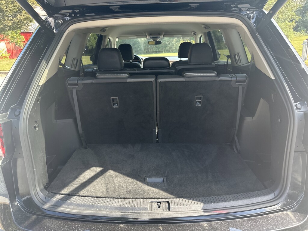 3.60 Axle Ratio, 3rd row seats: split-bench, 4-Wheel Disc Brakes, 6 Speakers, ABS brakes, Air Conditioning, Alloy wheels, AM/FM radio: SiriusXM with 360L, Auto-dimming Rear-View mirror, Automatic temperature control, Brake assist, Bumpers: body-color, Compass, Delay-off headlights, Driver door bin, Driver vanity mirror, Dual front impact airbags, Dual front side impact airbags, Electronic Stability Control, Emergency communication system: VW Car-Net Safe & Secure 5-year, Exterior Parking Camera Rear, Four wheel independent suspension, Front anti-roll bar, Front Bucket Seats, Front Center Armrest, Front dual zone A/C, Front fog lights, Front reading lights, Fully automatic headlights, Heated door mirrors, Heated front seats, Heated steering wheel, Heated/Actively Ventilated Front Bucket Seats, Illuminated entry, Low tire pressure warning, Occupant sensing airbag, Outside temperature display, Overhead airbag, Overhead console, Panic alarm, Passenger door bin, Passenger vanity mirror, Perforated V-Tex Leatherette Seating Surfaces, Power door mirrors, Power driver seat, Power Liftgate, Power steering, Power windows, Radio data system, Radio: MIB3 Composition Media, Rain sensing wipers, Rear air conditioning, Rear anti-roll bar, Rear reading lights, Rear seat center armrest, Rear window defroster, Rear window wiper, Remote keyless entry, Security system, Speed control, Speed-sensing steering, Split folding rear seat, Spoiler, Standard Suspension, Steering wheel mounted audio controls, Tachometer, Telescoping steering wheel, Tilt steering wheel, Traction control, Trip computer, Turn signal indicator mirrors, Variably intermittent wipers, Ventilated front seats, Wheels: 20" 2-Tone Machined Alloy. 19/26 City/Highway MPG CARFAX One-Owner.